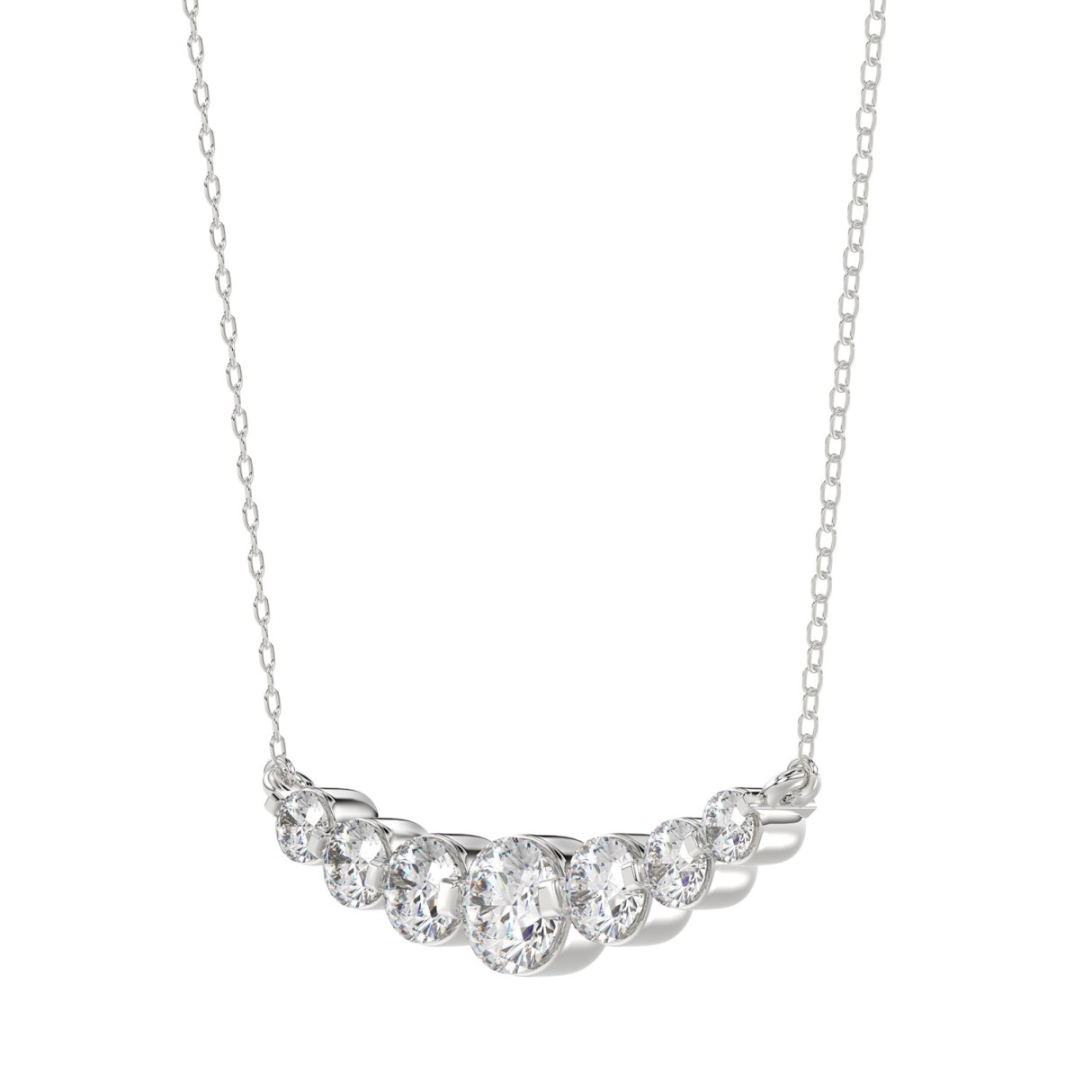 LADIES NECKLACE 7 1/2CT ROUND/PEAR/EMERALD DIAMOND 14K WHITE GOLD