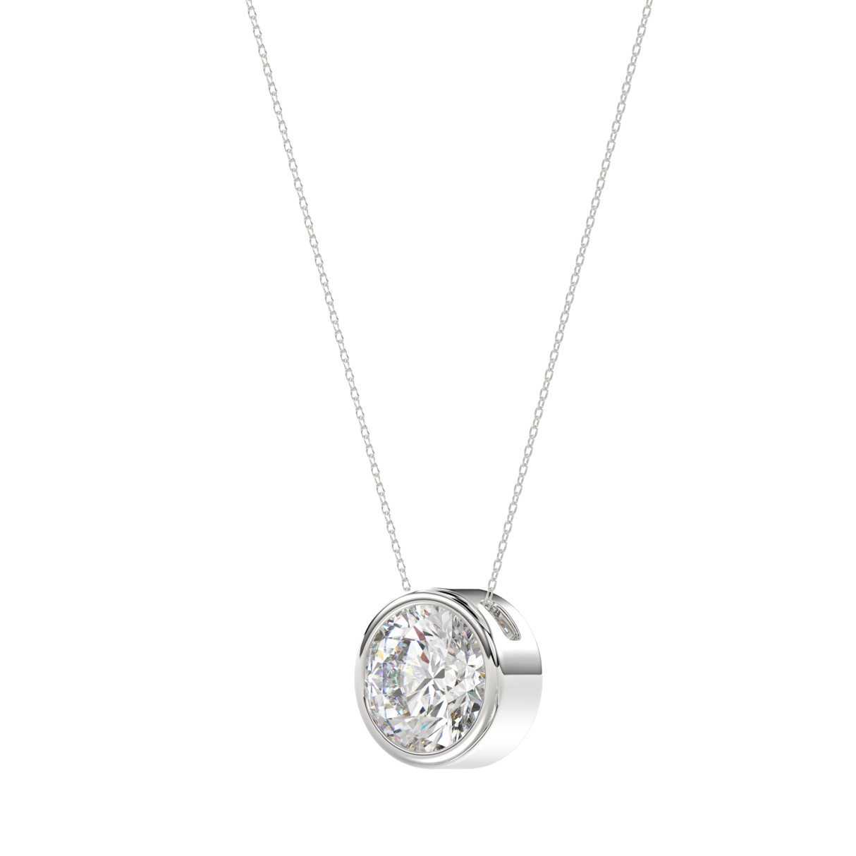 LADIES SOLITAIRE PENDANT WITH UNDER-PASS CHAIN 2.00CT ROUND DIAMOND 14K WHITE GOLD