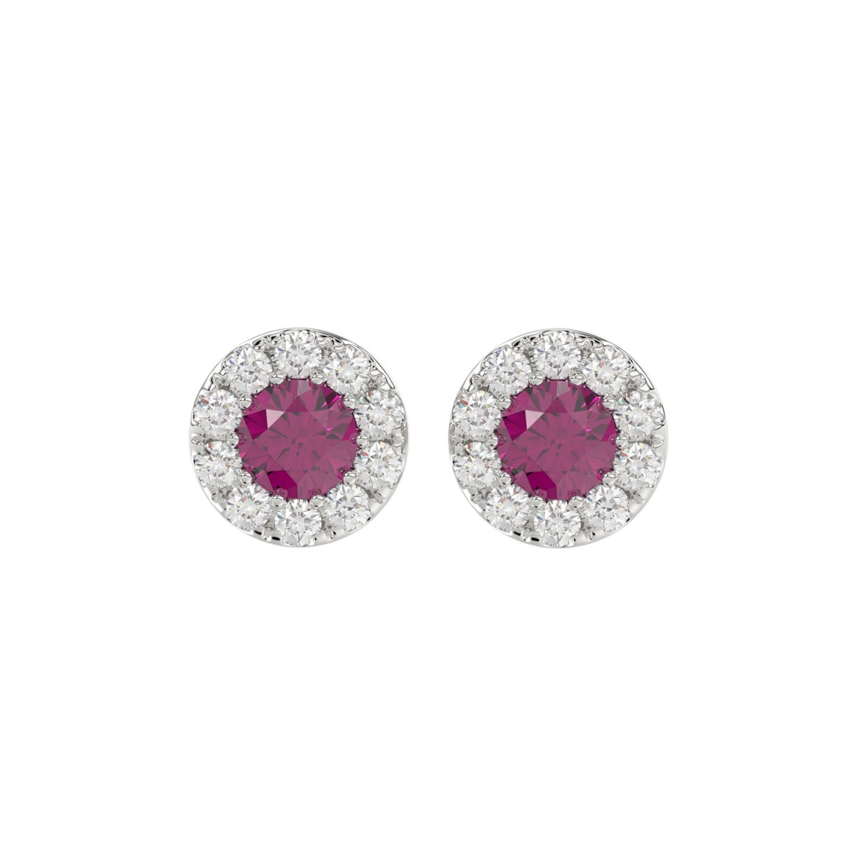 14K WHITE GOLD 1/2CT ROUND/ROUND RUBY DIAMOND LADIES EARRING (ROUND RUBY 1 1/3CT)