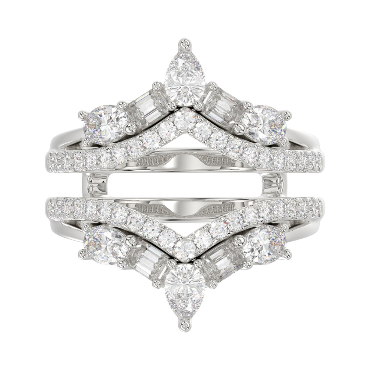 14K WHITE GOLD 1 3/4CT ROUND/EMERALD/PEAR/OVAL DIAMOND LADIES RING