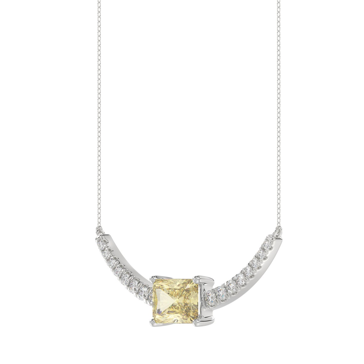 14K WHITE GOLD 1 3/4CT ROUND/YELLOW OVAL DIAMOND LADIES PENDANT WITH CHAIN