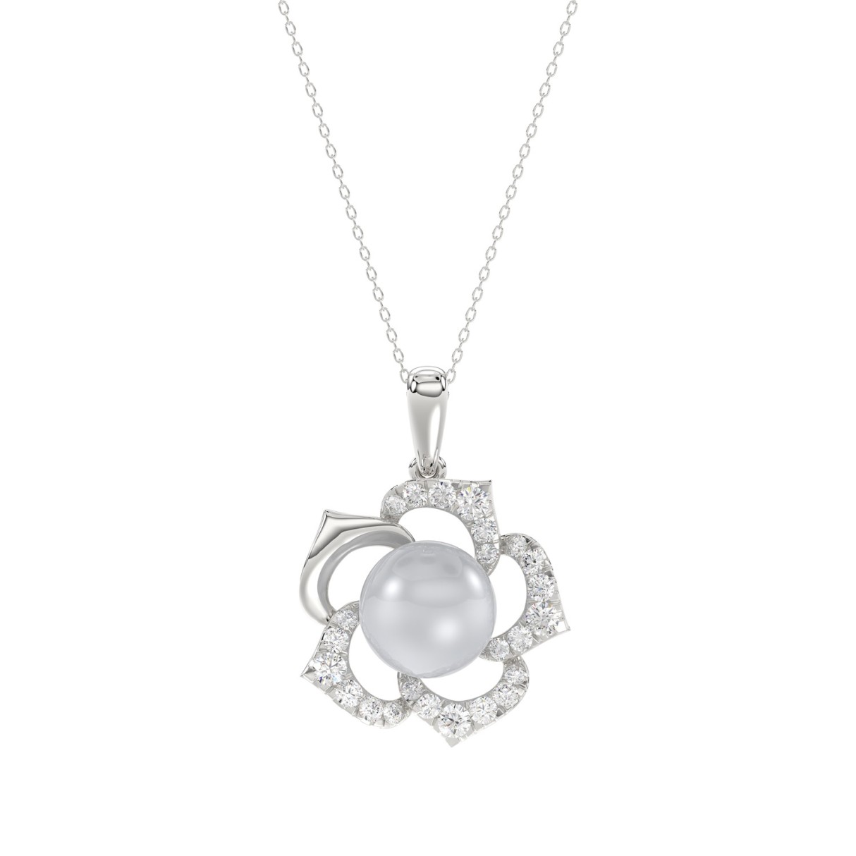 14K WHITE GOLD 1/4CT ROUND/PEARL DIAMOND LADIES PENDANT WITH CHAIN