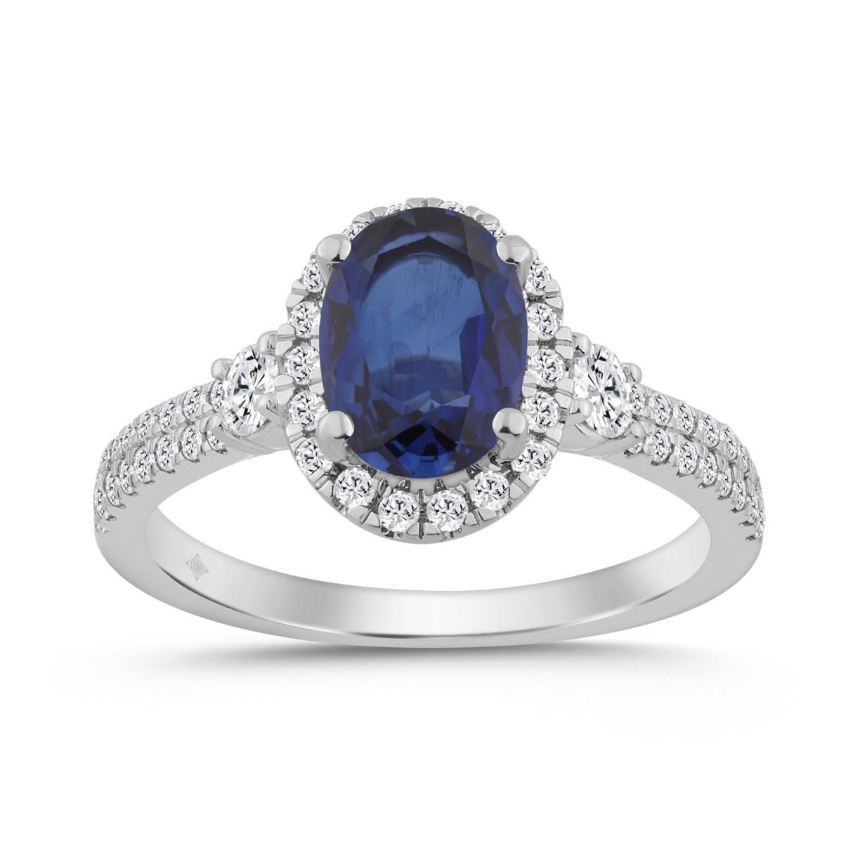 14K WHITE GOLD 1 5/8CT ROUND/BLUE SAPPHIRE OVAL DIAMOND LADIES RING (CENTER STONE BLUE SAPPHIRE OVAL DIAMOND 1CT)