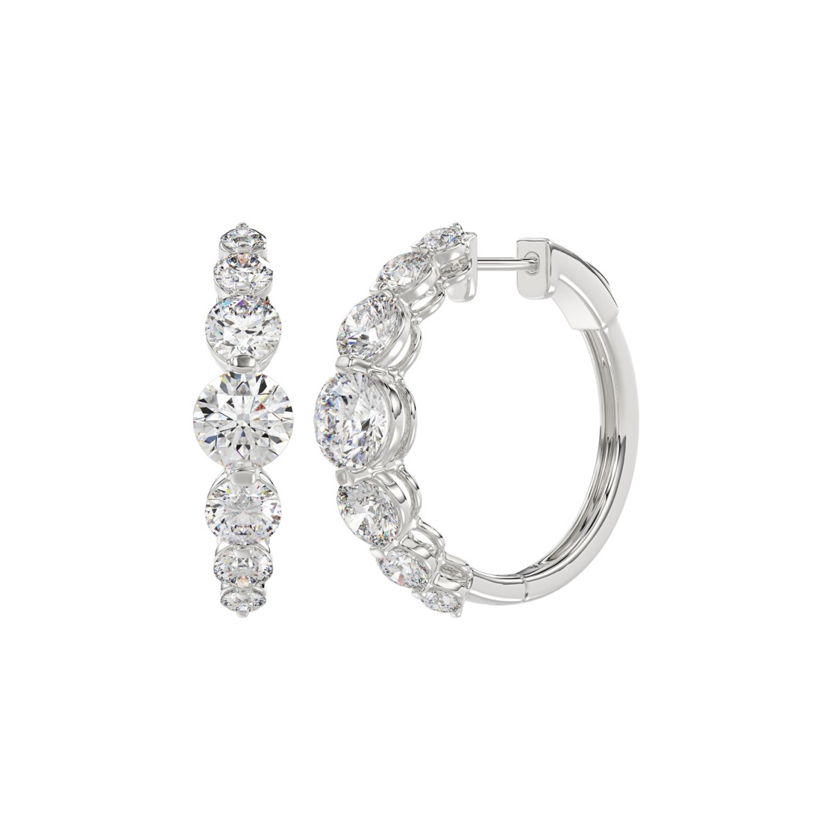 14K WHITE GOLD 2.00CT ROUND DIAMOND LADIES HOOPS EARRINGS