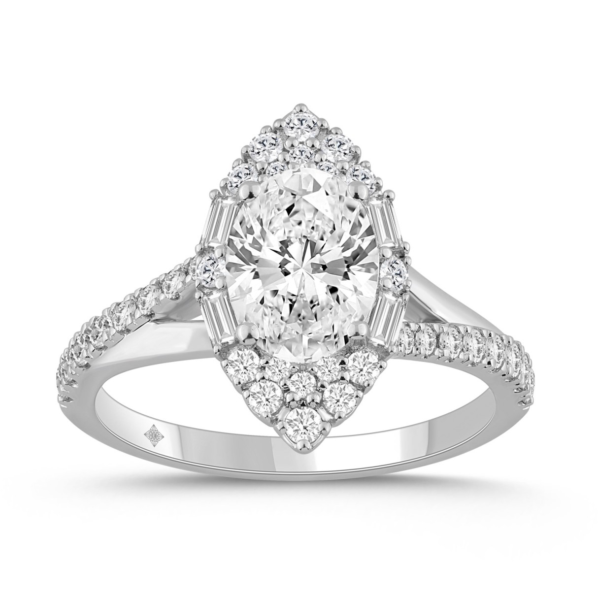 14K WHITE GOLD 2.00CT ROUND/OVAL DIAMOND LADIES RING (CENTER STONE OVAL DIAMOND 1 1/2CT)