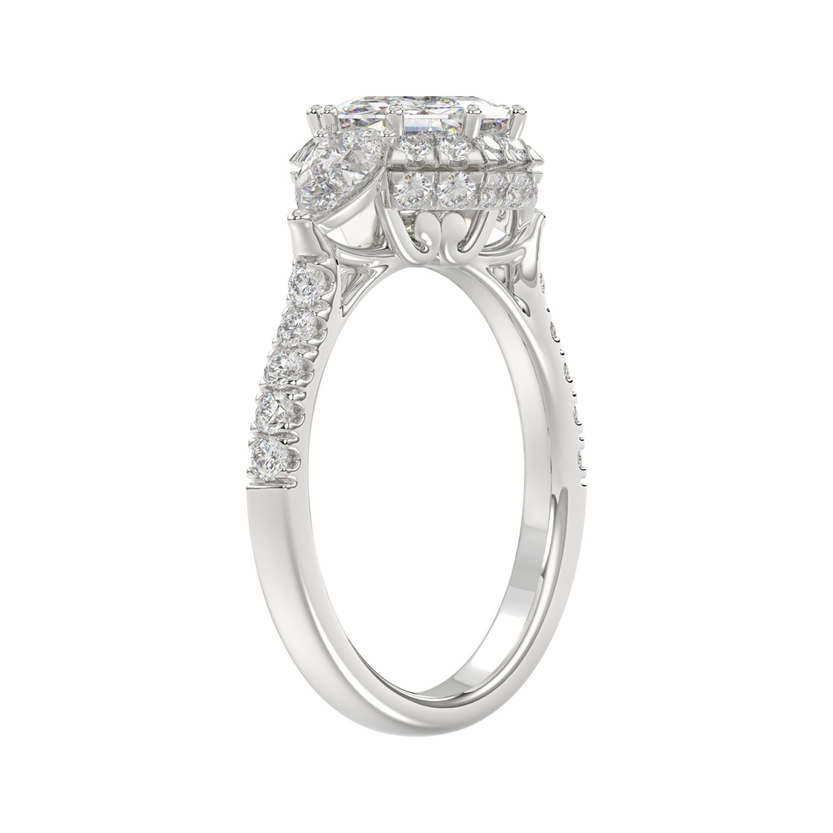 14K WHITE GOLD 2.00CT ROUND/PEAR/OCTAGON STEP CUT DIAMOND LADIES RING