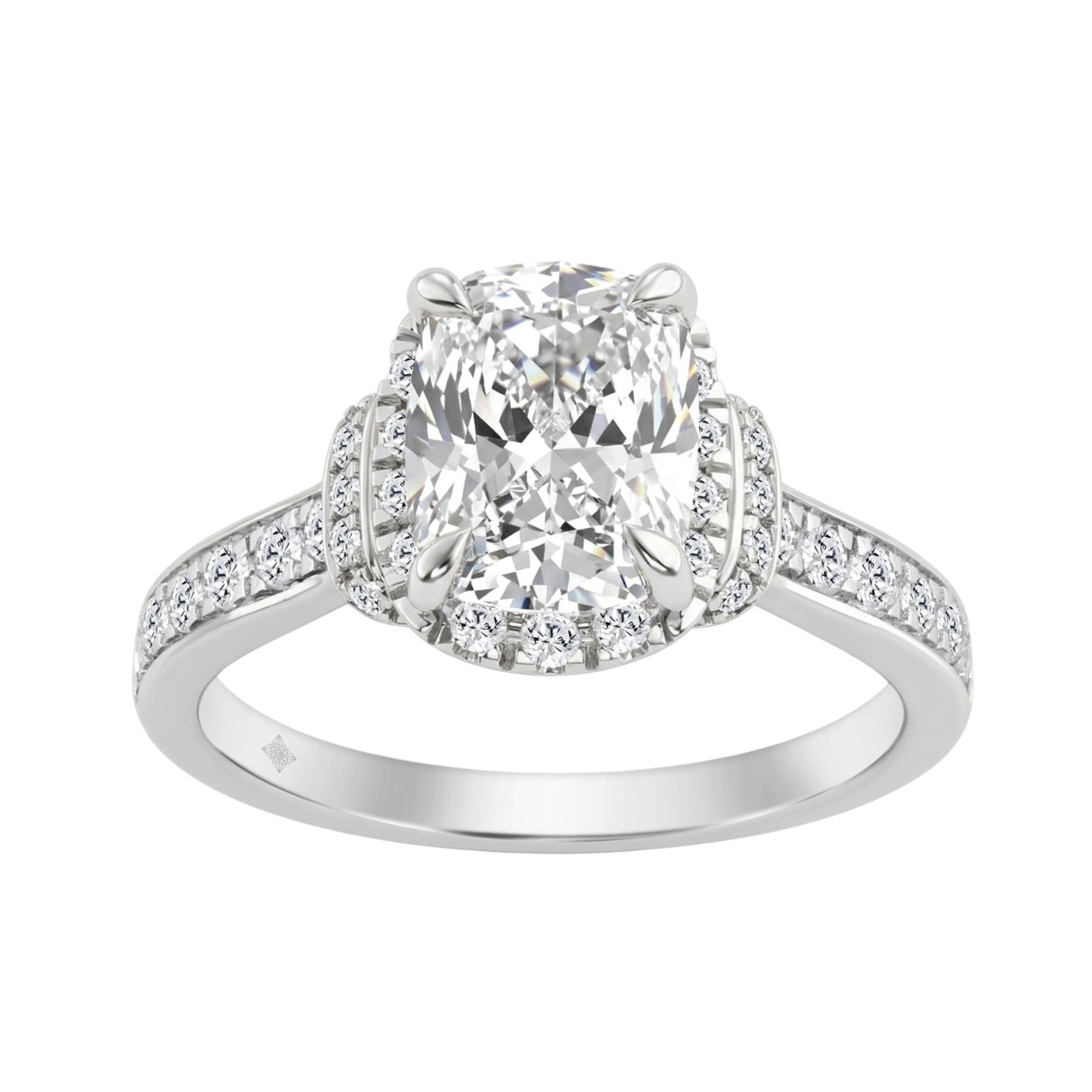 14K White Gold 2 1/2Ct Elongated Cushion Cut Diamond Halo Engagement Ring With Round Diamonds Bridal Ring For Women 2Ct Cushion Center Stone (Color F-