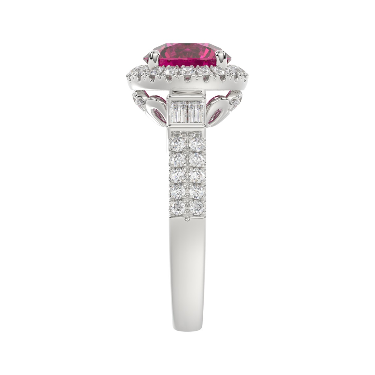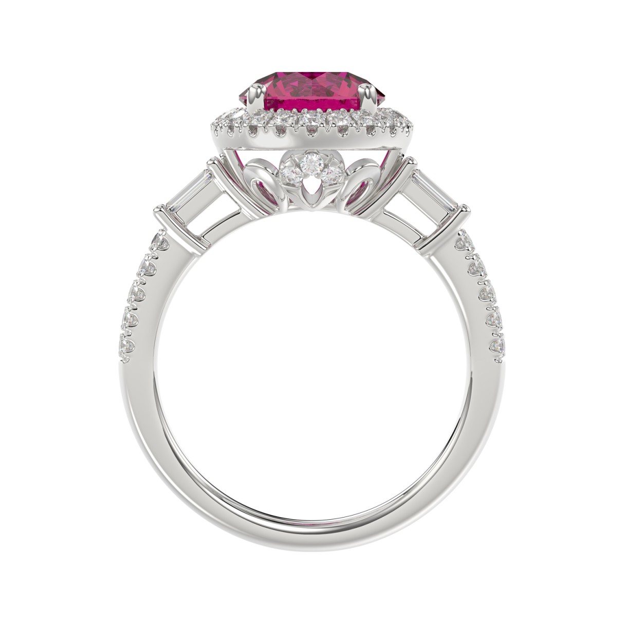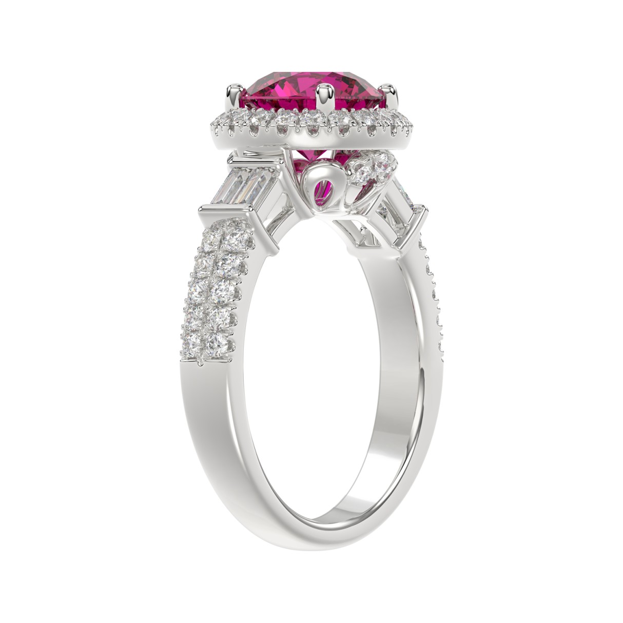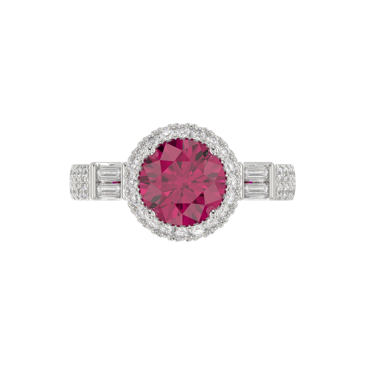 14K WHITE GOLD 2 1/2CT ROUND/BAGUETTE DIAMOND LADIES RING (CENTER STONE ROUND RUBY DIAMOND 2CT)