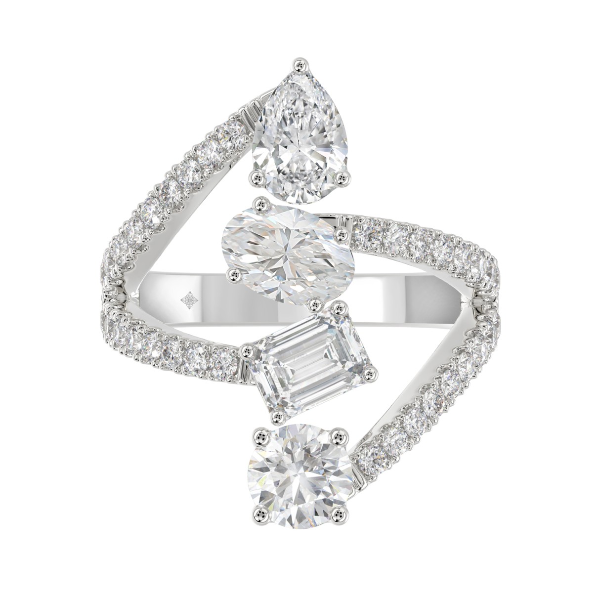 14K WHITE GOLD 2 1/2CT ROUND/EMERALD/PEAR/OVAL DIAMOND LADIES RING