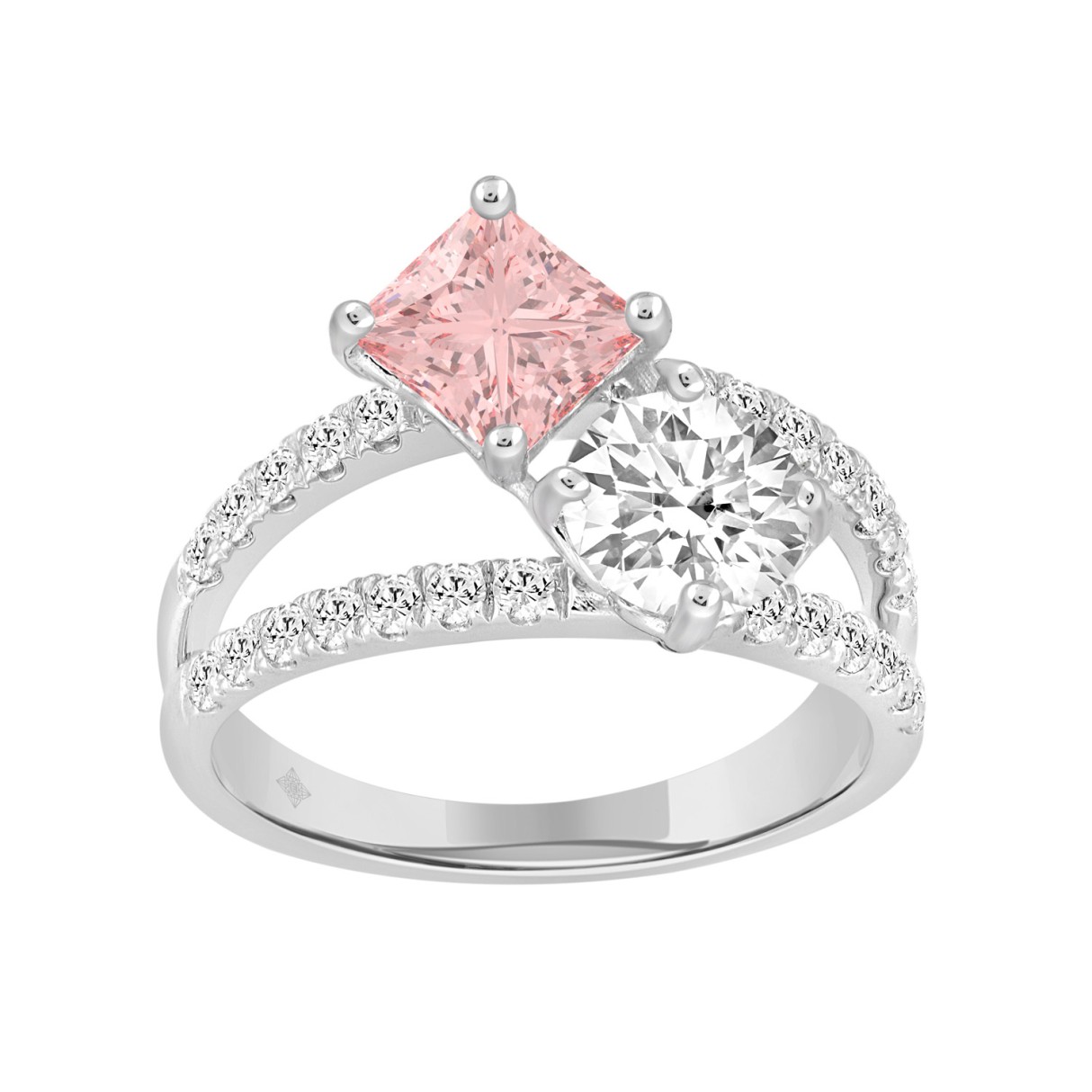 14K WHITE GOLD 2 1/2CT ROUND/PINK PRINCESS DIAMOND LADIES RING