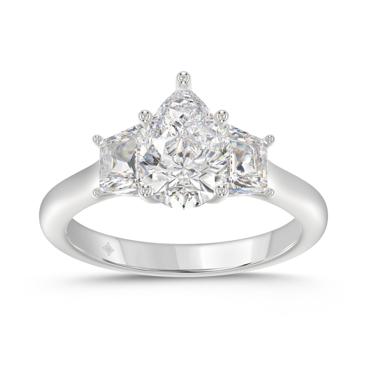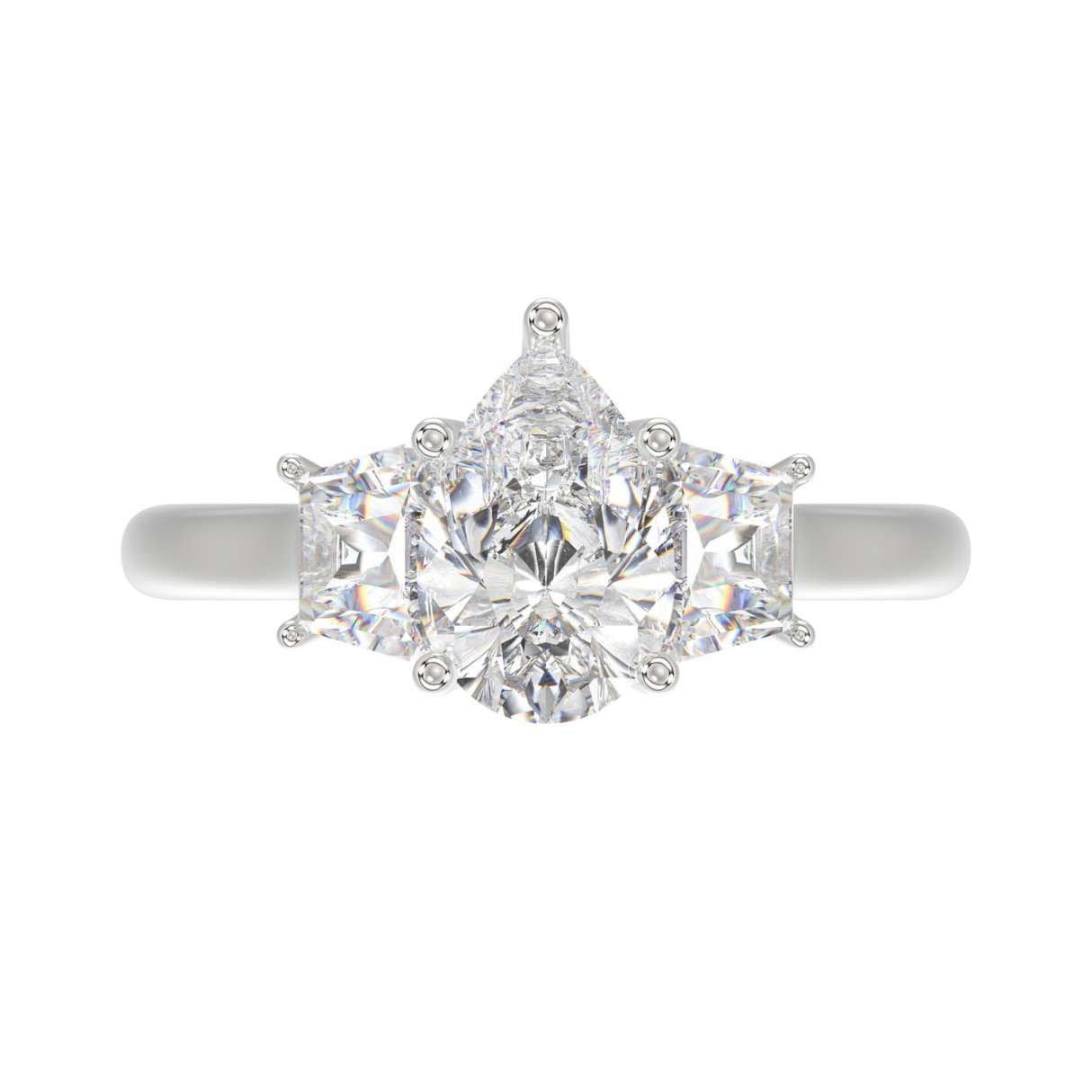 14K WHITE GOLD 2 1/5CT PEAR/TRAPEZOID DIAMOND LADIES RING (CENTER STONE PEAR DIAMOND 1 1/2CT)
