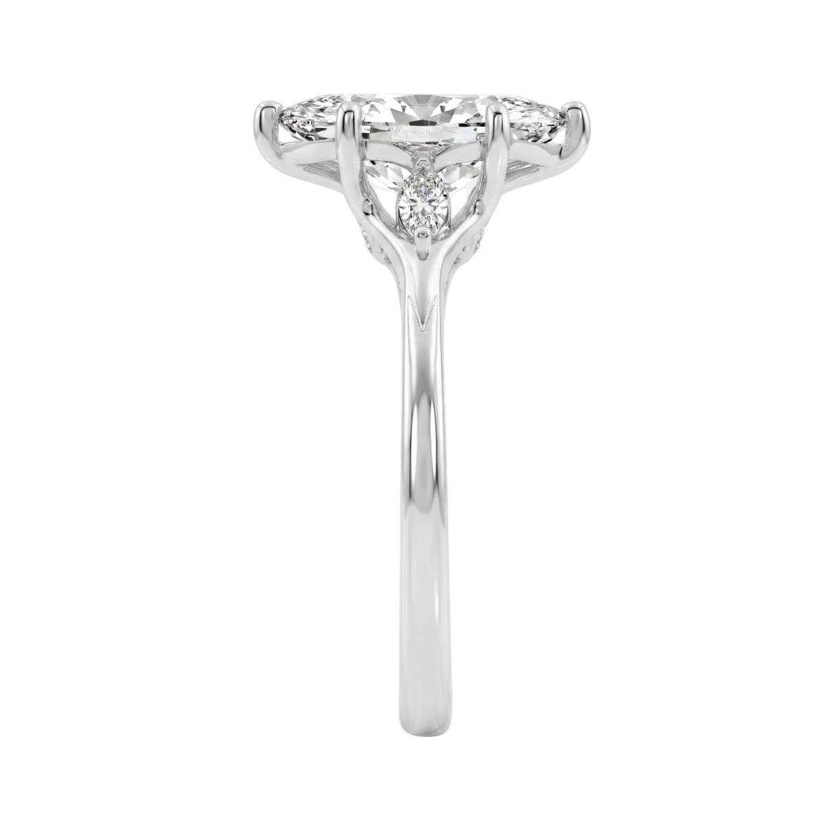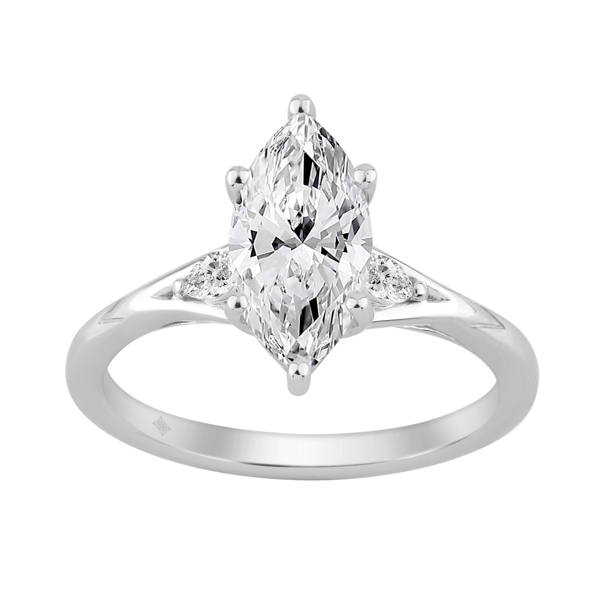 14K White Gold 2 1/6Ct Marquise And Round Three Stone Ladies Engagement Ring With Marquise 2Ct Center Stone (Color F-G Clarity Vs1/Vs2)