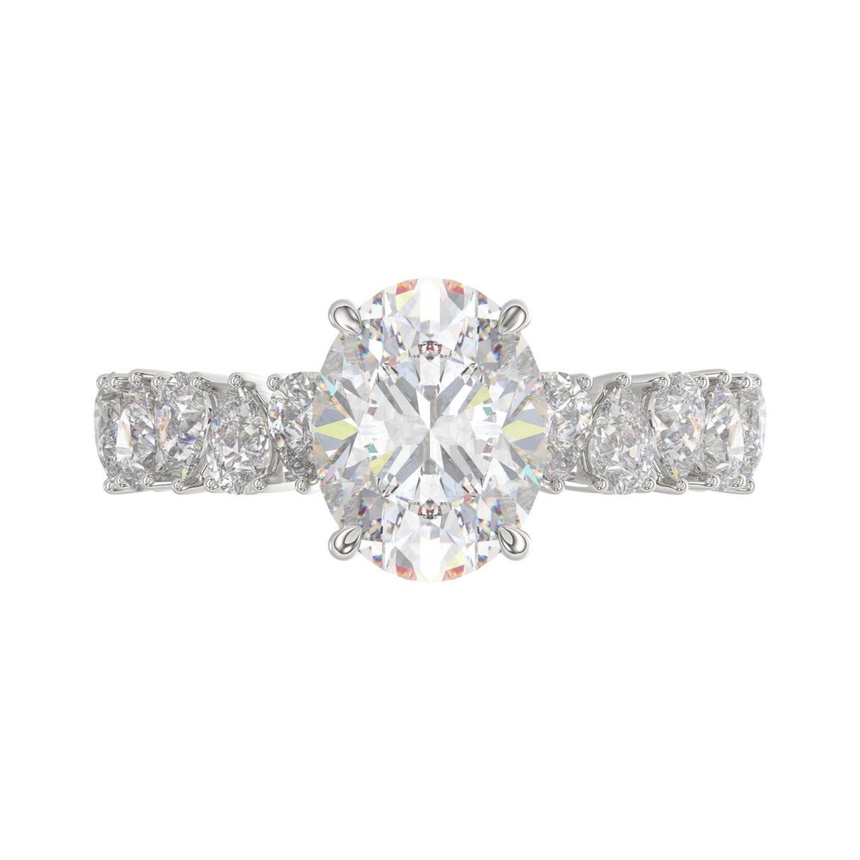 14K WHITE GOLD 2 3/4CT ROUND/OVAL/PEAR DIAMOND LADIES RING (CENTER STONE OVAL DIAMOND 2.00CT)