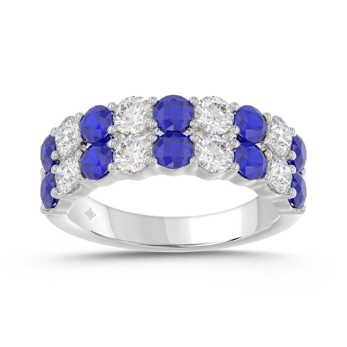 14K WHITE GOLD 2 3/8CT ROUND DIAMOND LADIES BAND (BLUE SAPPHIRE ROUND)