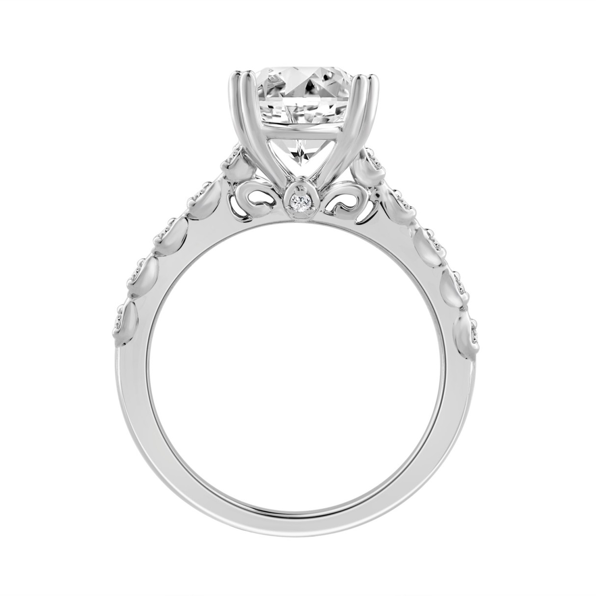 LADIES RING 5 1/2CT ROUND/CUSHION DIAMOND 14K WHITE GOLD (CENTER STONE CUSHION DIAMOND 4CT )
