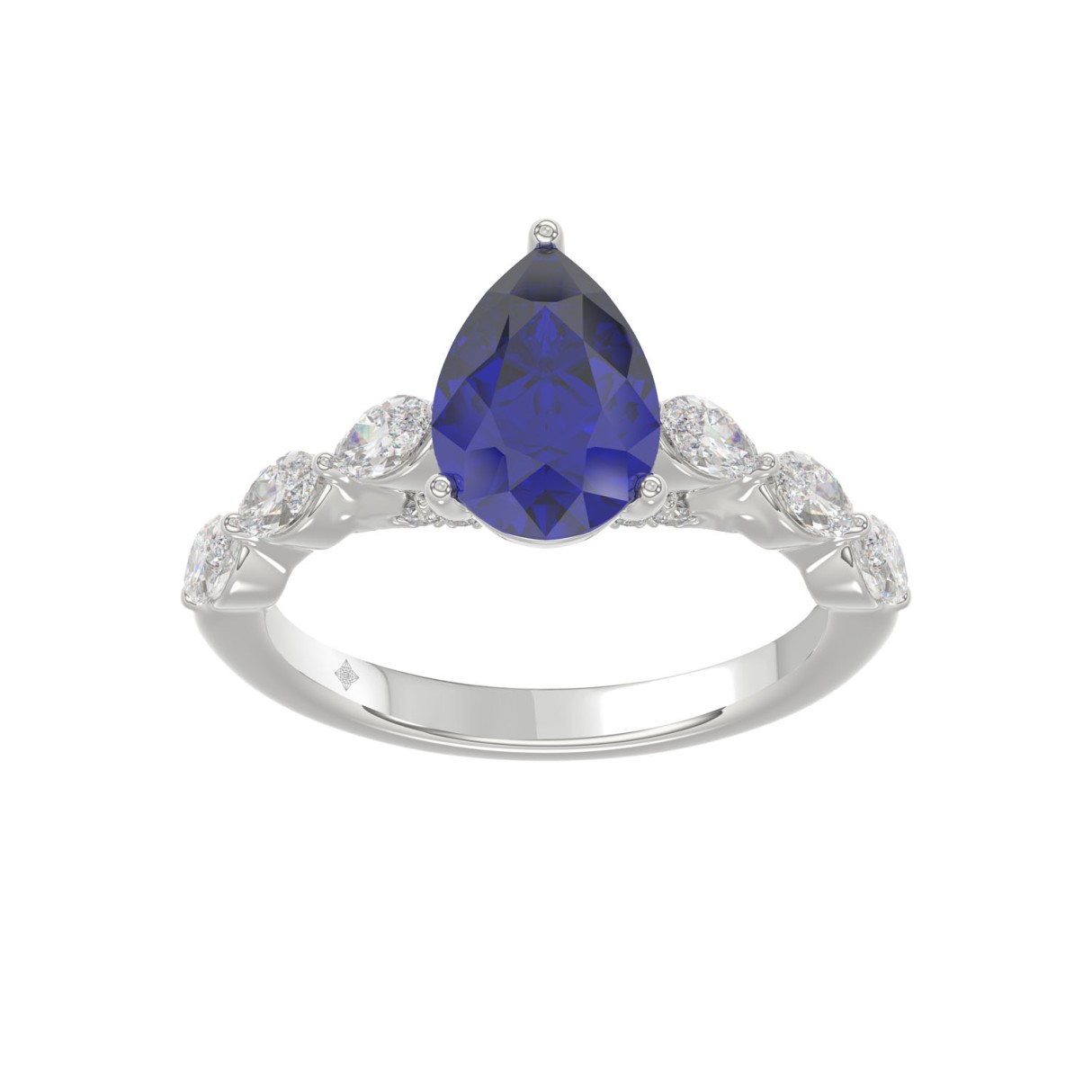 14K WHITE GOLD 3.00CT ROUND/MARQUISE/BLUE SAPPHIRE PEAR DIAMOND LADIES RING (CENTER STONE BLUE SAPPHIRE PEAR DIAMOND 2 1/4CT)