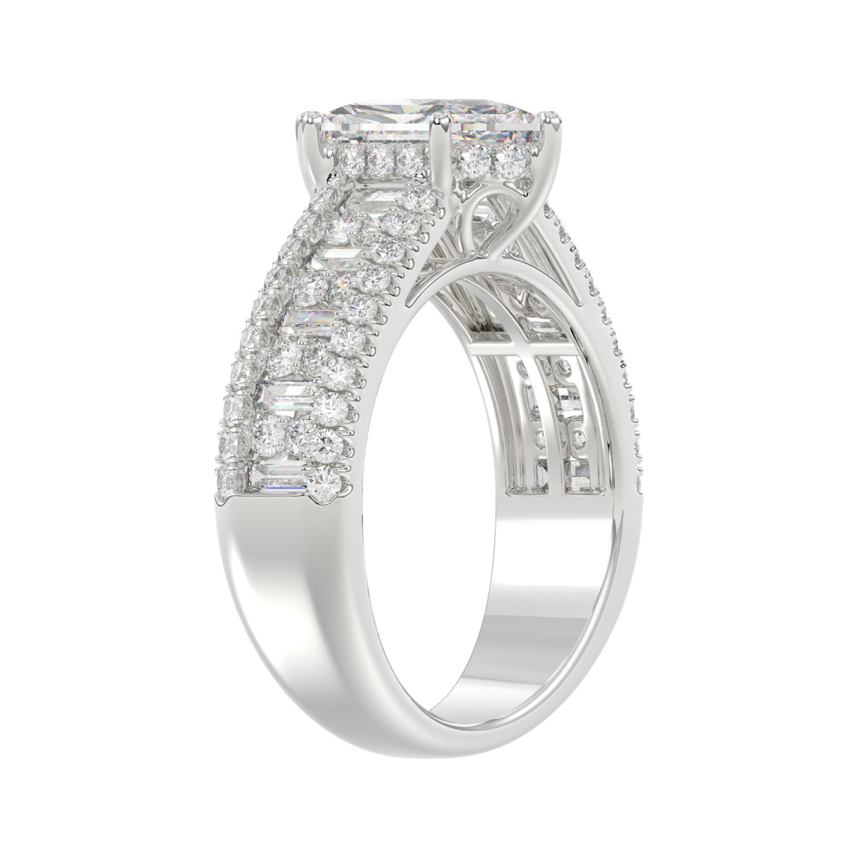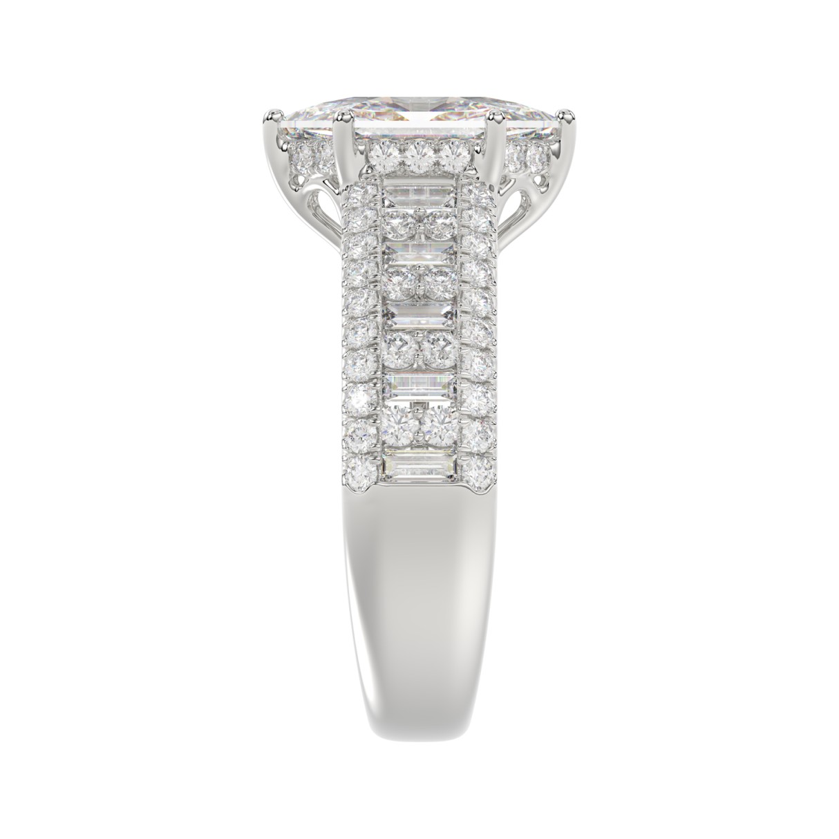 14K WHITE GOLD 3 1/2CT ROUND/BAGUETTE/RADIANT DIAMOND LADIES RING