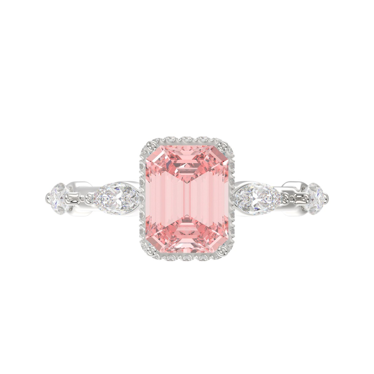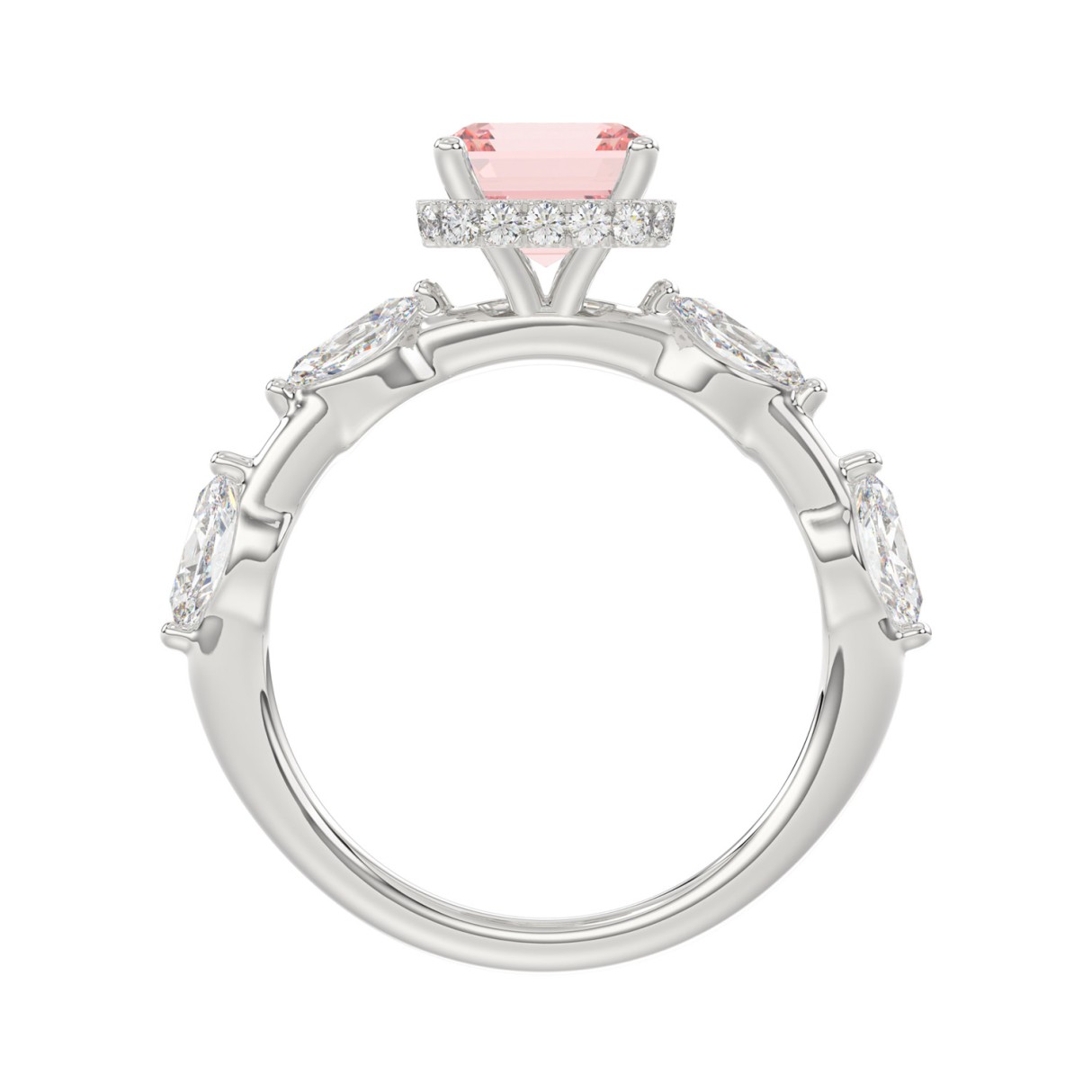 14K WHITE GOLD 3 1/2CT ROUND/MARQUISE/PINK EMERALD DIAMOND LADIES RING (CENTER STONE PINK EMERALD DIAMOND 3.00CT)