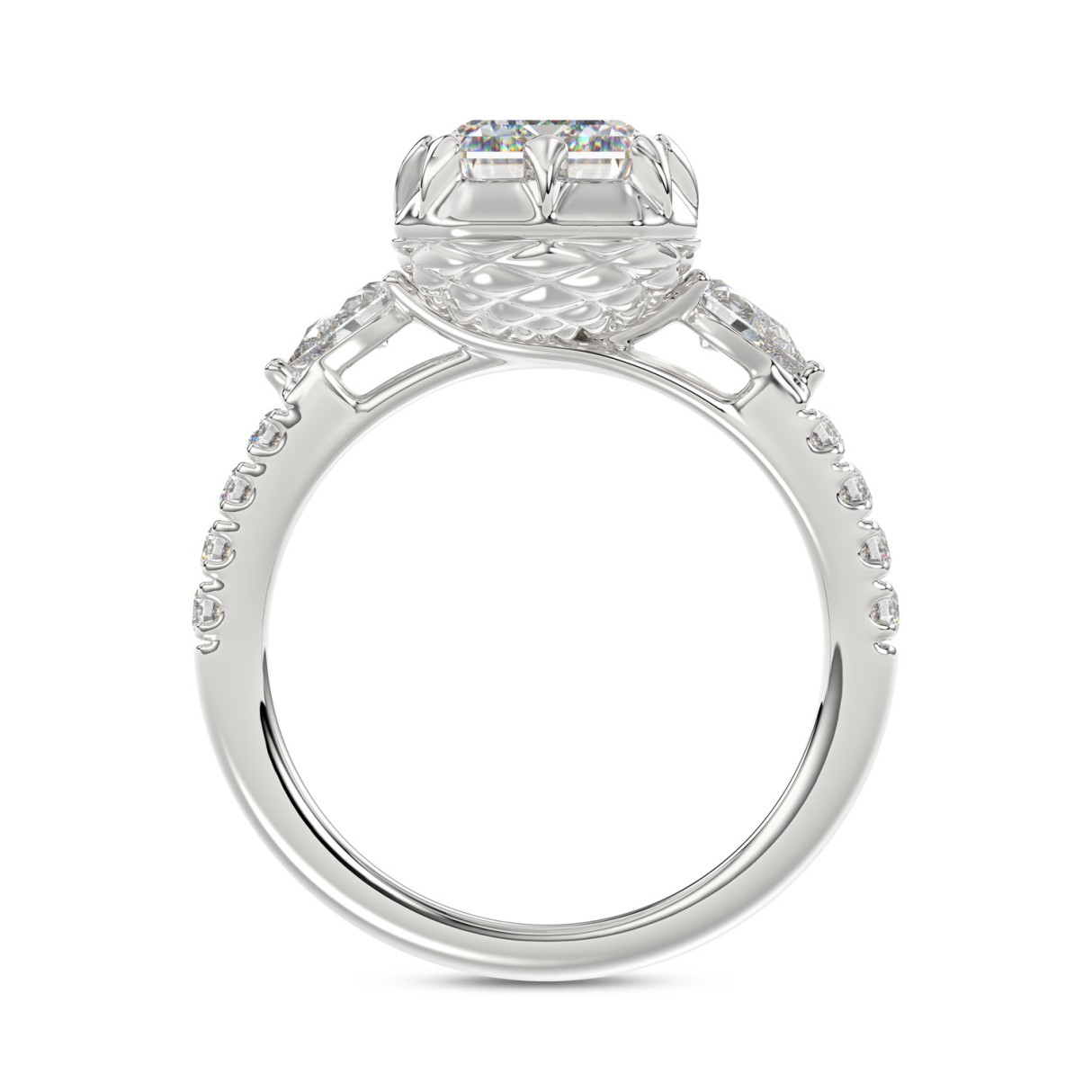 14K WHITE GOLD 3 1/2CT ROUND/PEAR/EMERALD DIAMOND LADIES RING (CENTER STONE EMERALD DIAMOND 3CT)