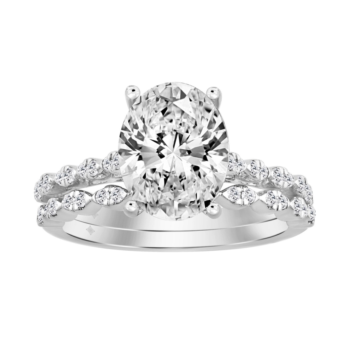 14K WHITE GOLD 3 1/3CT ROUND/OVAL DIAMOND LADIES BRIDAL SET (CENTER STONE OVAL DIAMOND 3CT)