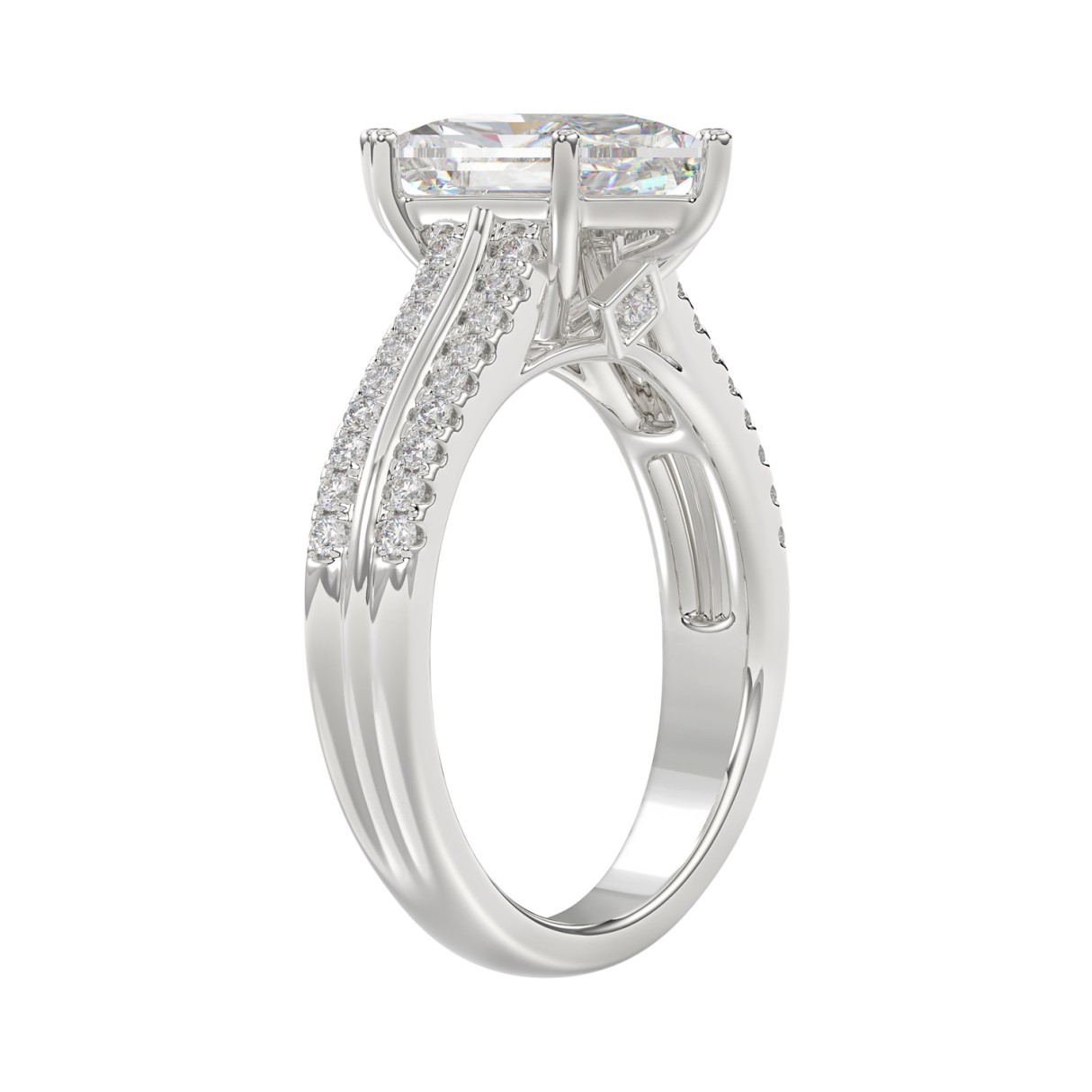 LADIES RING 5 1/2CT ROUND/PRINCESS DIAMOND 14K WHITE GOLD (CENTER STONE PRINCESS DIAMOND 4CT )
