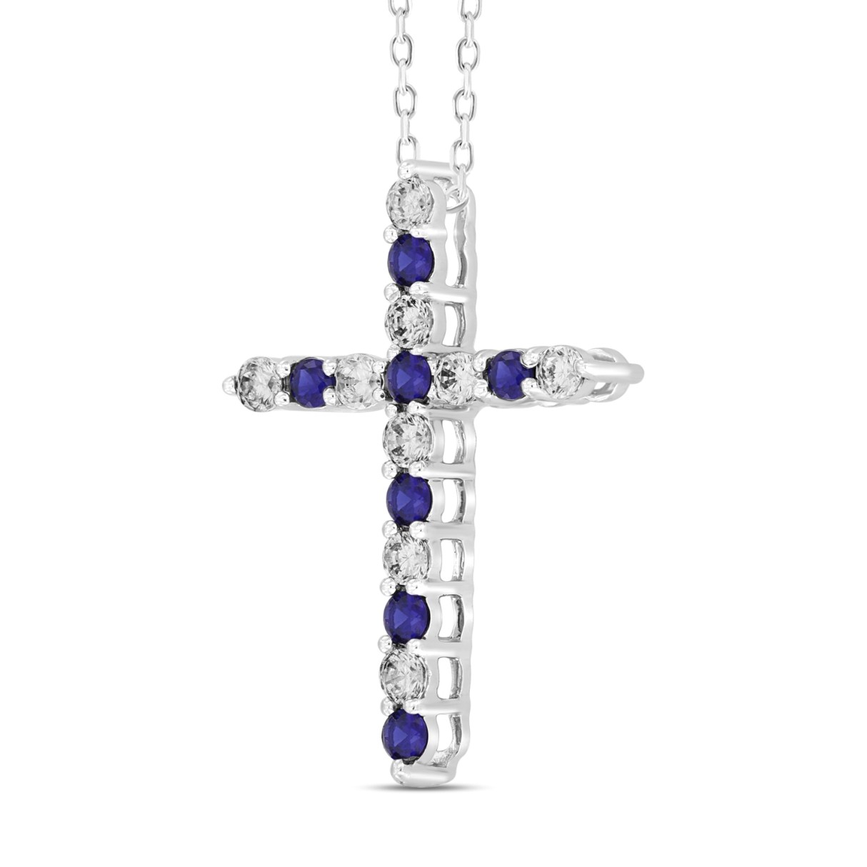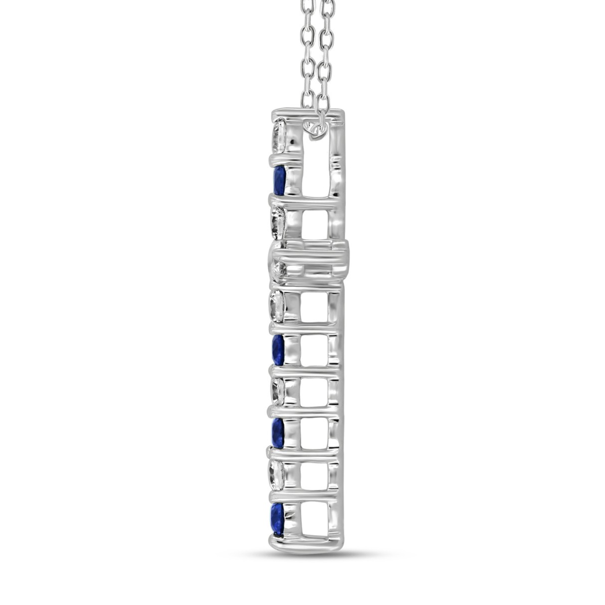 14K WHITE GOLD 3/4CT ROUND DIAMOND LADIES PENDANT (BLUE SAPPHIRE ROUND DIAMOND 3/8CT)