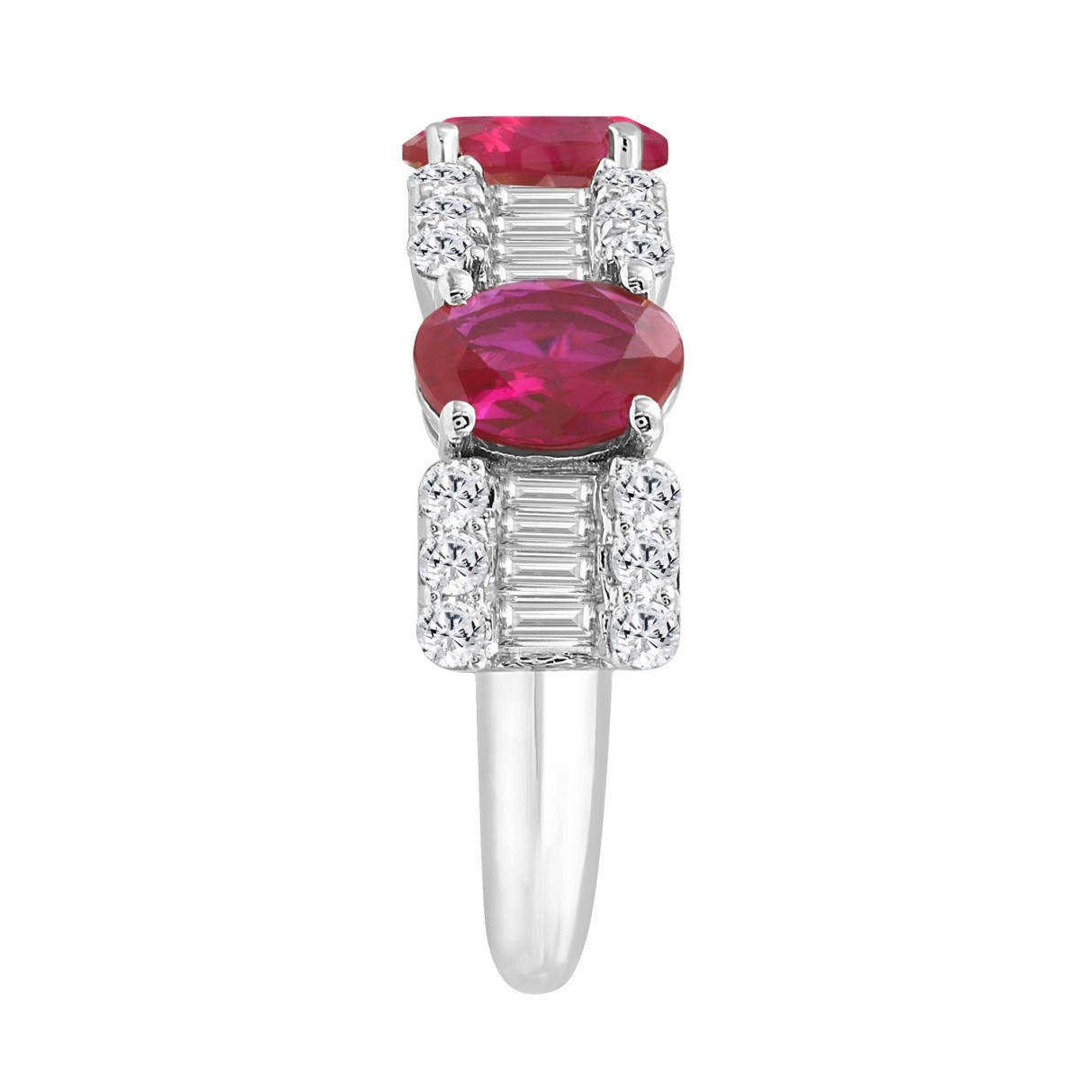 14K WHITE GOLD 3 5/8CT ROUND/BAGUETTE/OVAL DIAMOND LADIES BAND (OVAL RUBY 2 1/3CT)
