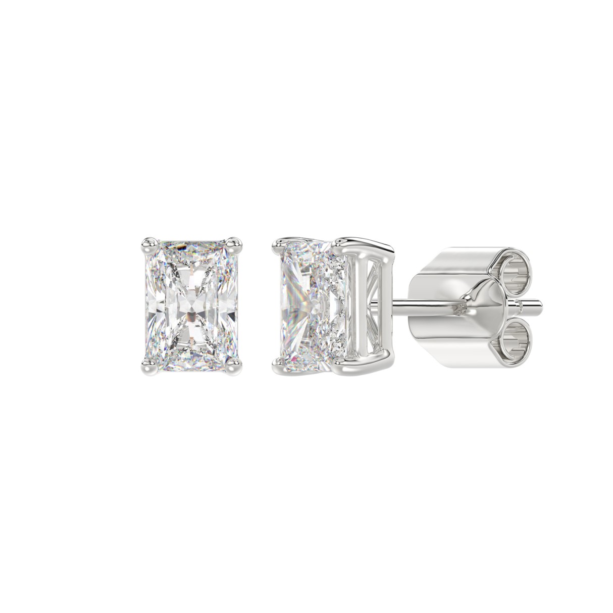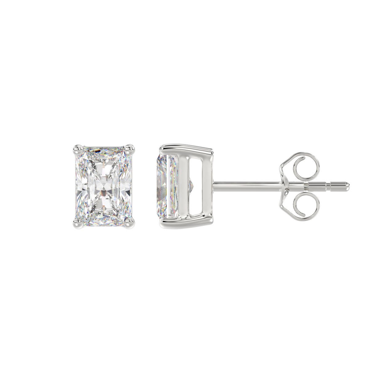14K WHITE GOLD 3CT RADIANT DIAMOND LADIES SOLITAIRE EARRINGS