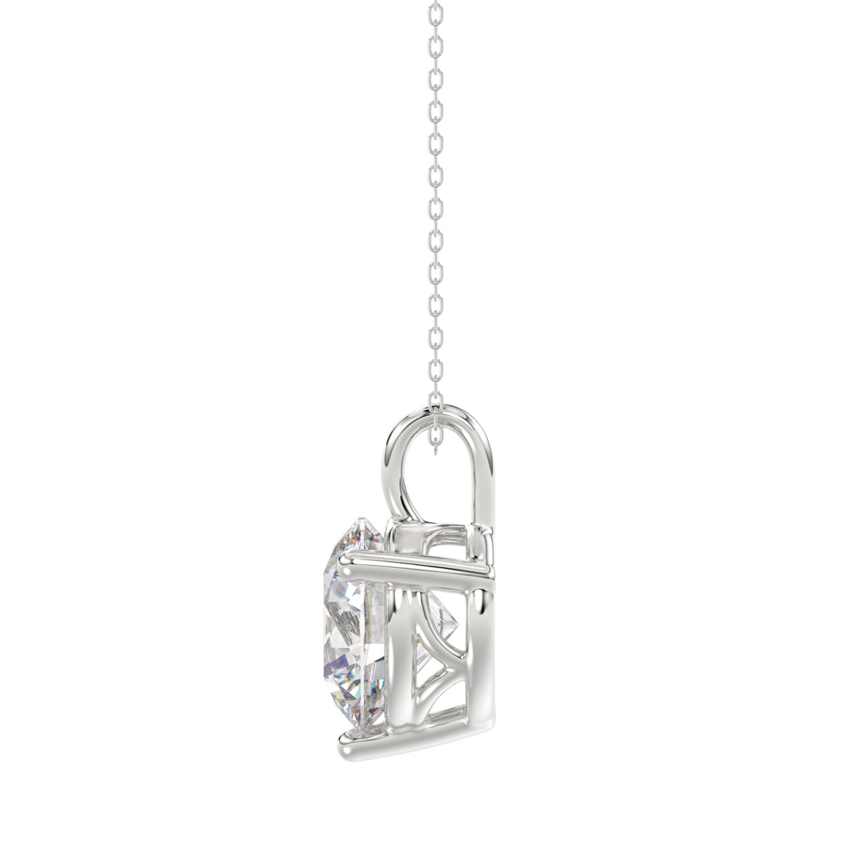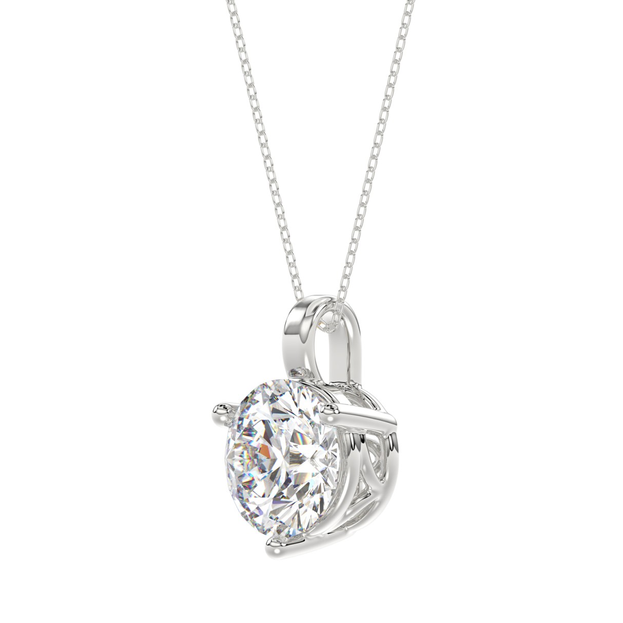 LADIES SOLITAIRE PENDANT WITH UNDER-PASS CHAIN 2.00CT ROUND DIAMOND 14K WHITE GOLD
