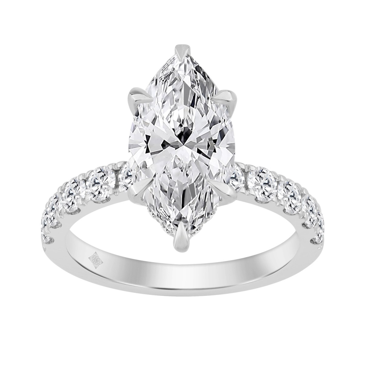 14K WHITE GOLD 4.00CT MARQUISE/ROUND DIAMOND LADIES RING (CENTER STONE MARQUISE DIAMOND 3.00CT)