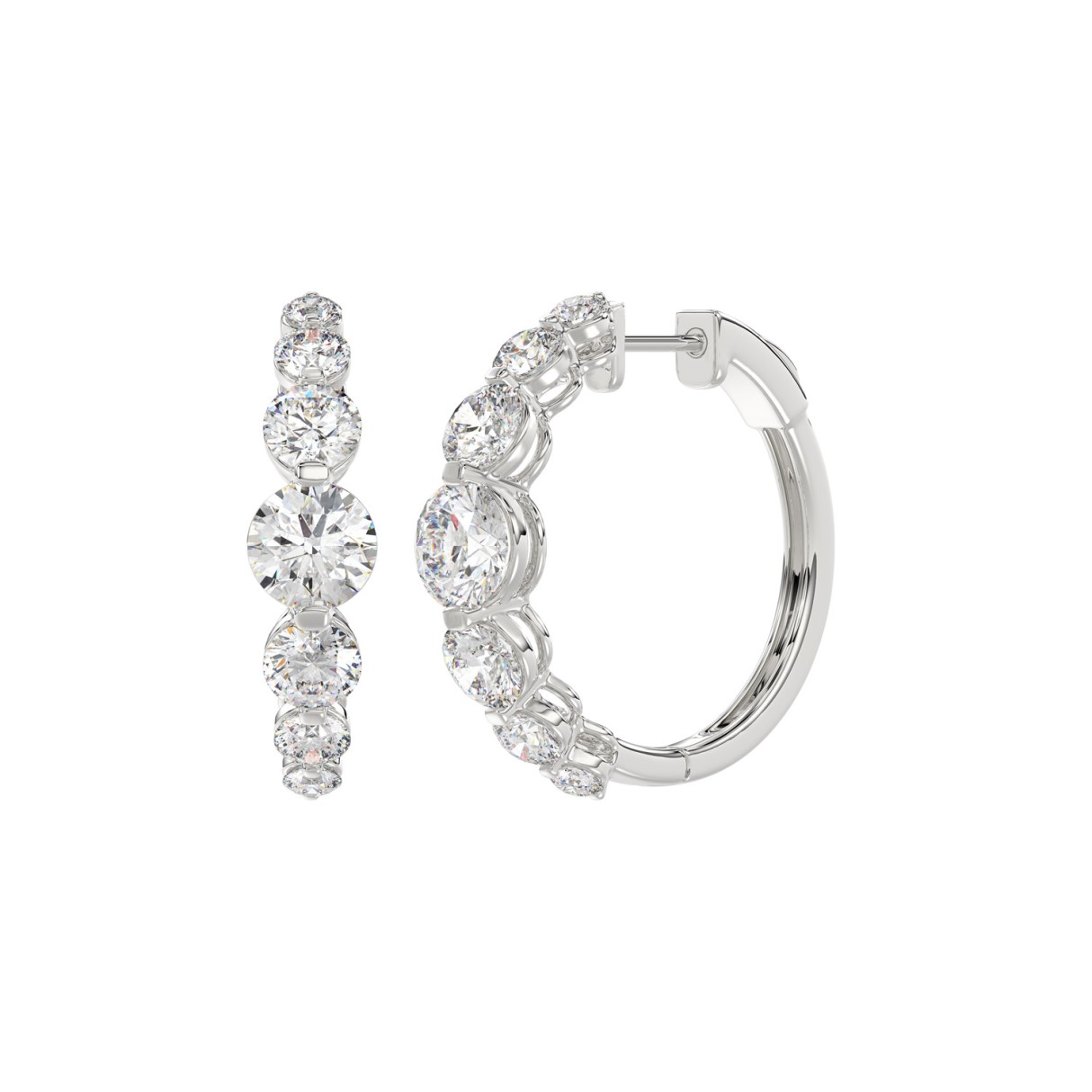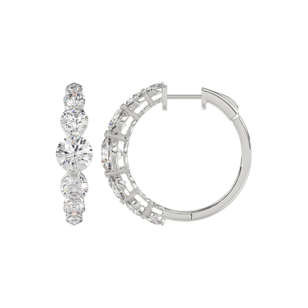 LADIES HOOP EARRINGS 5.00CT ROUND DIAMOND 14K WHITE GOLD (SI QUALITY)