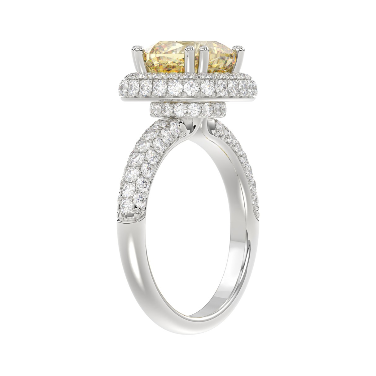 14K WHITE GOLD 4.00CT ROUND/YELLOW CUSHION DIAMOND LADIES RING (CENTER STONE CUSHION YELLOW DIAMOND 3.00CT)
