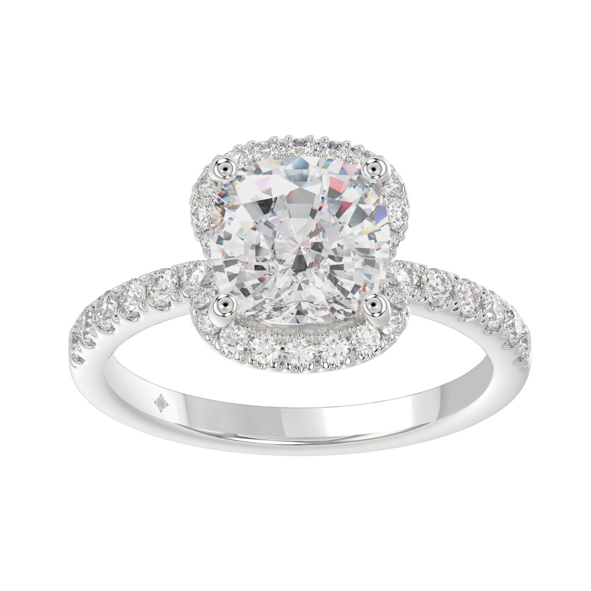 14K WHITE GOLD 4 1/2CT ROUND/CUSHION DIAMOND LADIES RING (CENTER STONE CUSHION DIAMOND 4CT & Color F-G Clarity VS1/VS2)