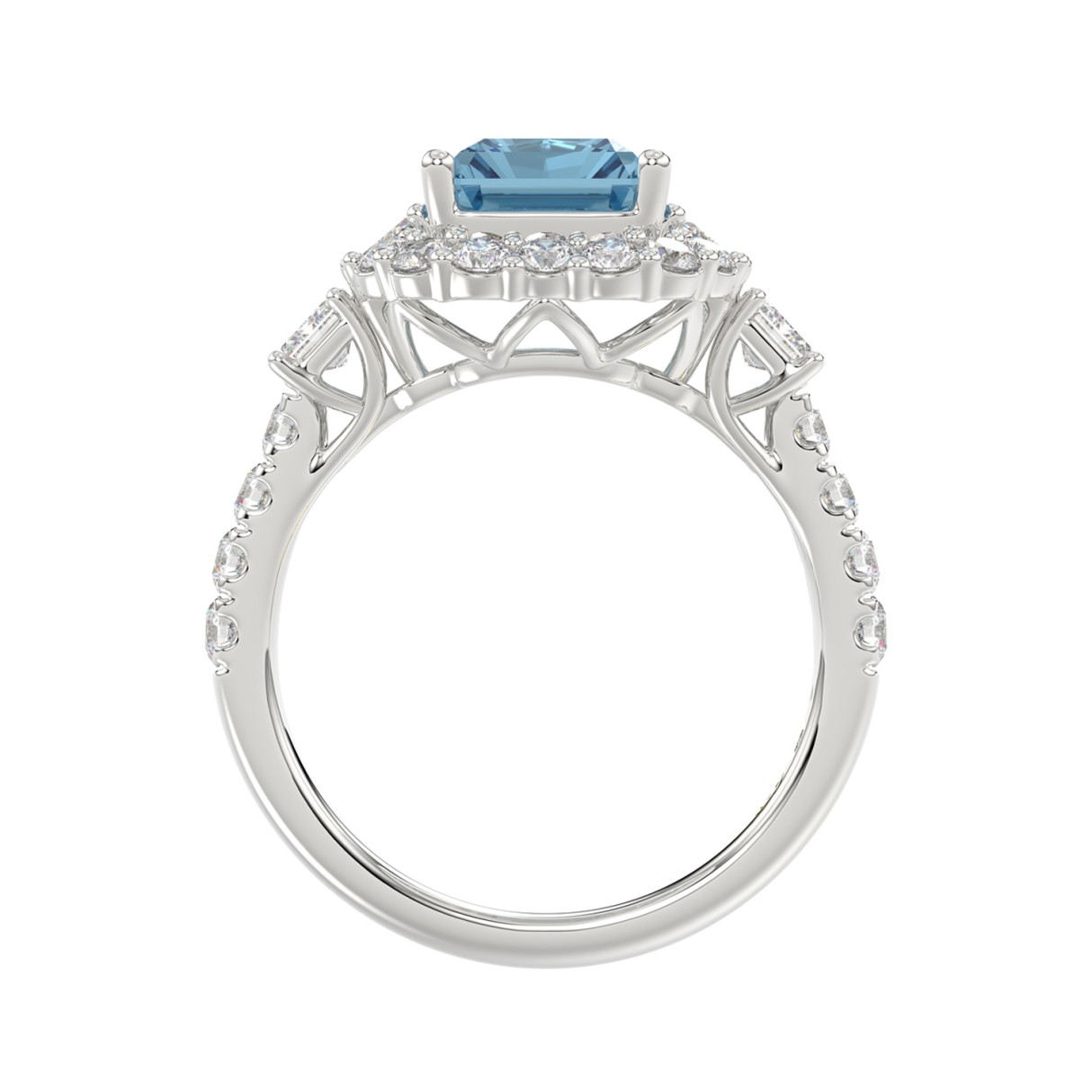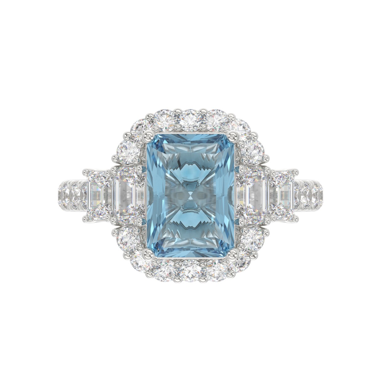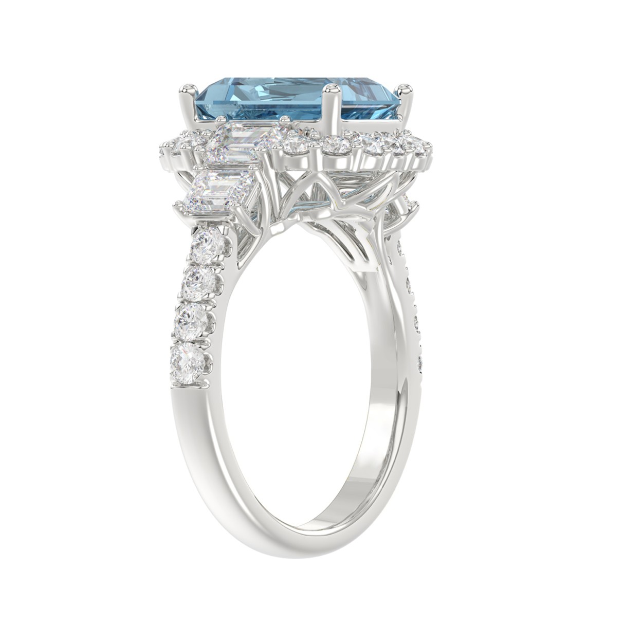 14K WHITE GOLD 4 1/2CT ROUND/EMERALD DIAMOND LADIES RING (CENTER STONE RADIANT BLUE DIAMOND 3.00CT)
