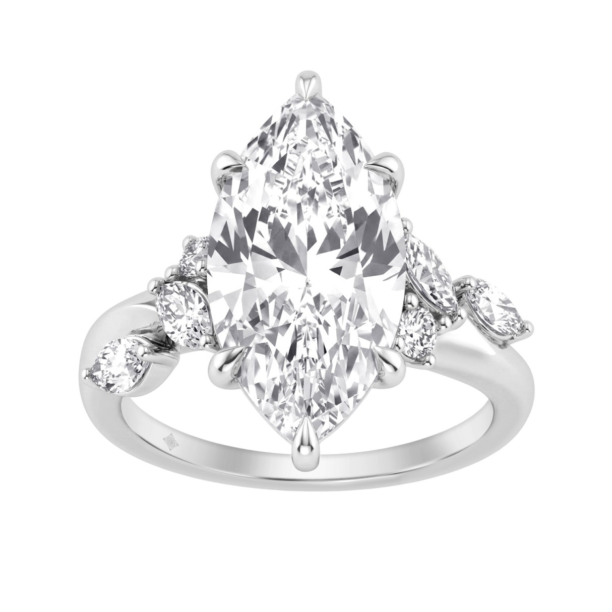 14K White Gold 5 1/2Ct Lab-Grown Diamond Engagement Ring For Women 5Ct Marquise Center Stone With Round Side Stones, Luxury Bridal Ring (Color F-G -Cl