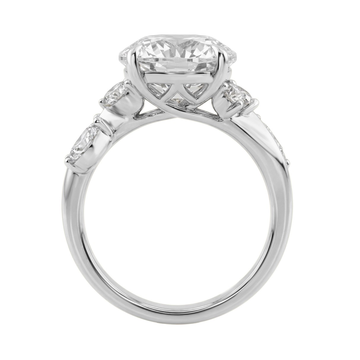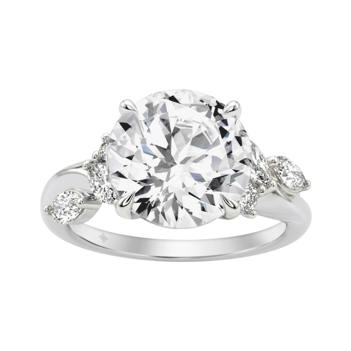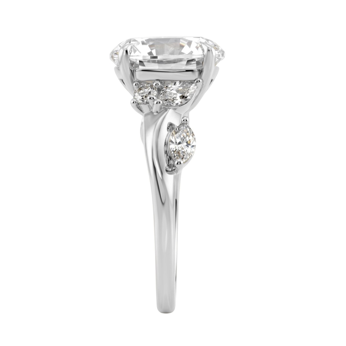 14K White Gold 5 1/2Ct Lab-Grown Diamond Engagement Ring For Women 5Ct Round Center Stone With Marquise Side Stones, Luxury Bridal Ring (Color F-G -Cl