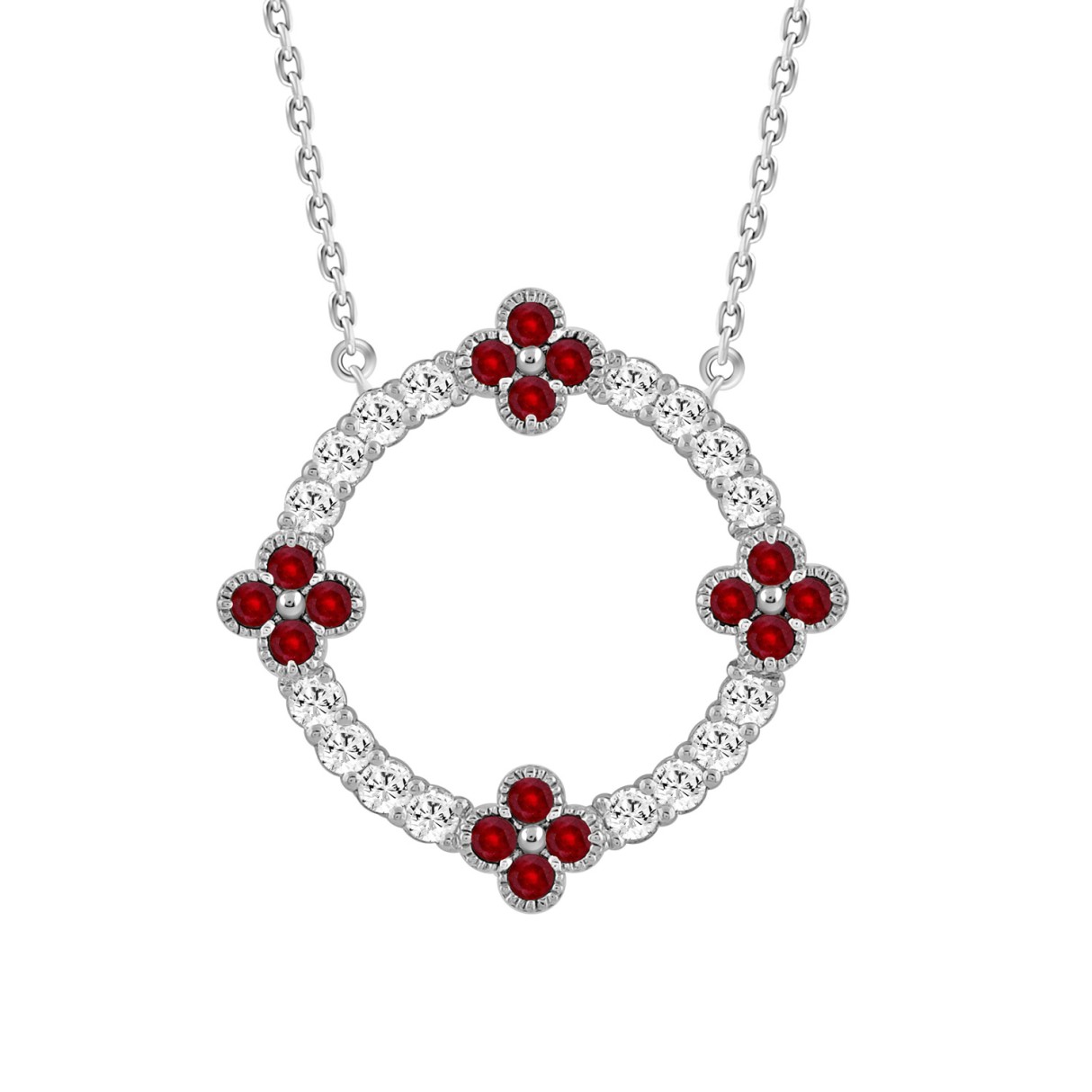 14K WHITE GOLD 5/8CT ROUND/ROUND RUBY DIAMOND LADIES PENDANT WITH CHAIN