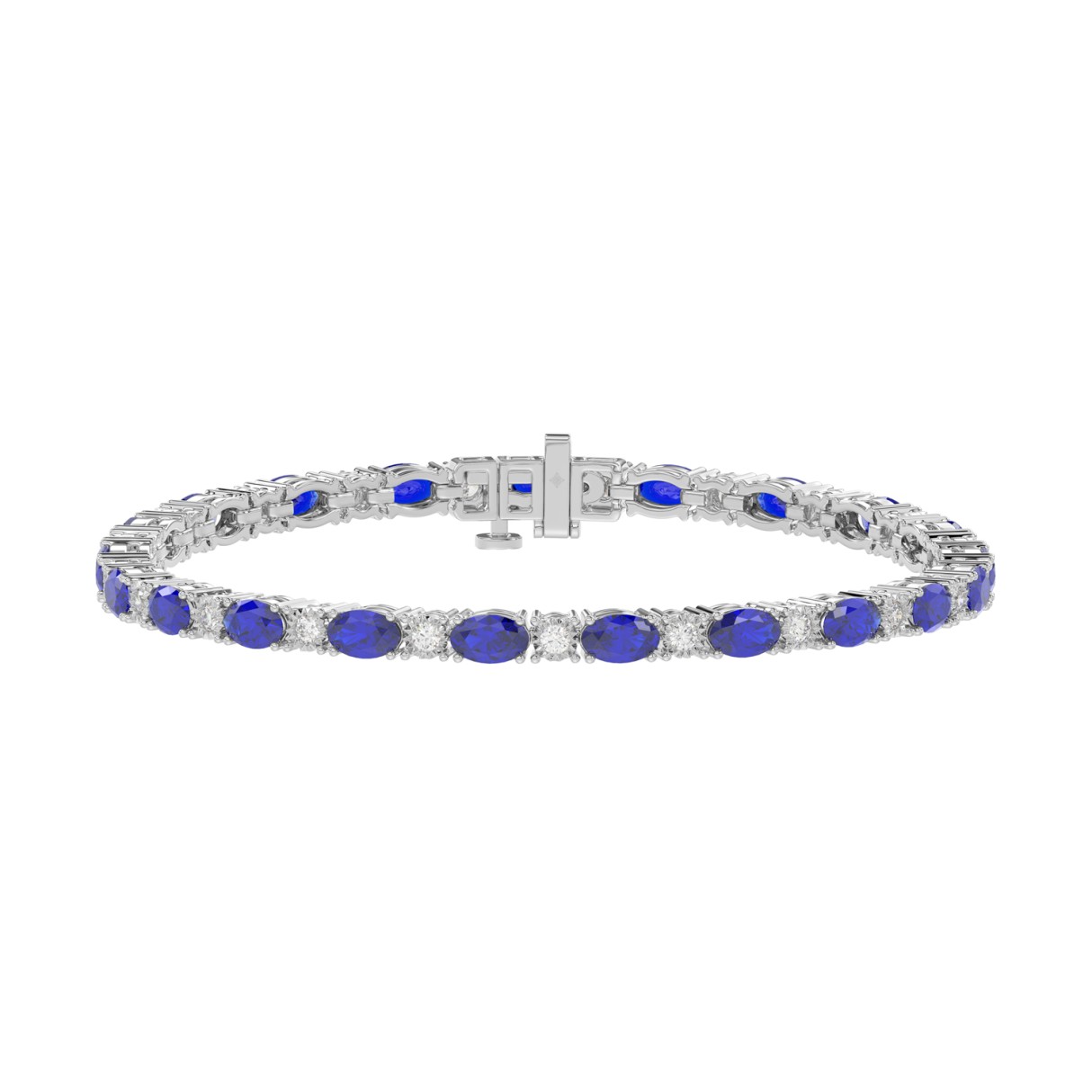 14K WHITE GOLD 6 7/8CT ROUND/OVAL DIAMOND LADIES BRACELET (BLUE SAPPHIRE OVAL 6 1/6CT)