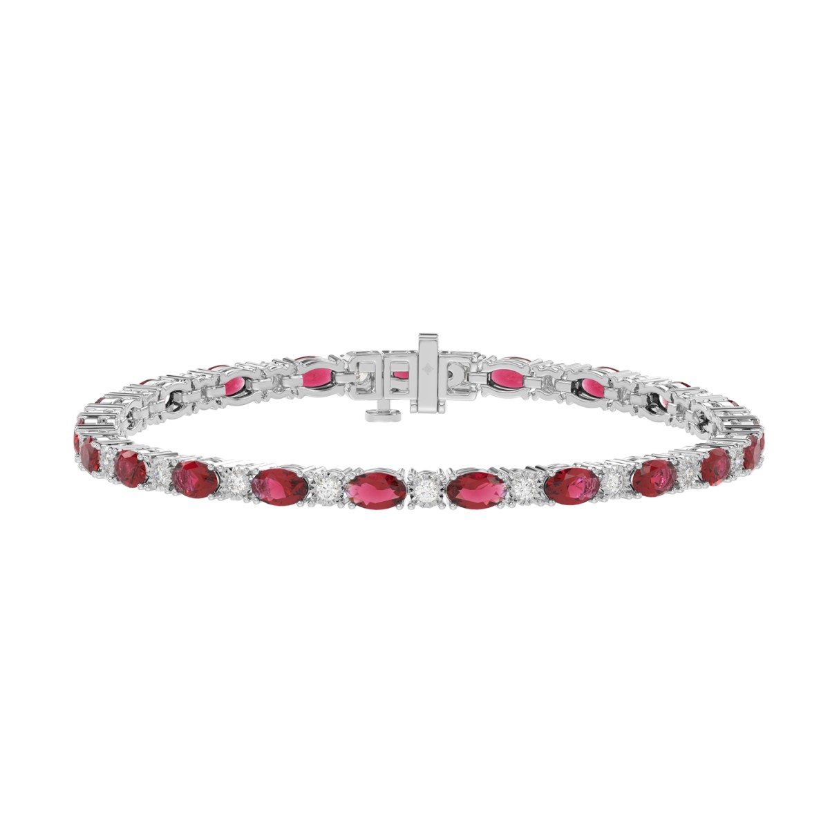 14K WHITE GOLD 6 7/8CT ROUND/RUBY OVAL DIAMOND LADIES BRACELET (OVAL RUBY 6 1/6CT)