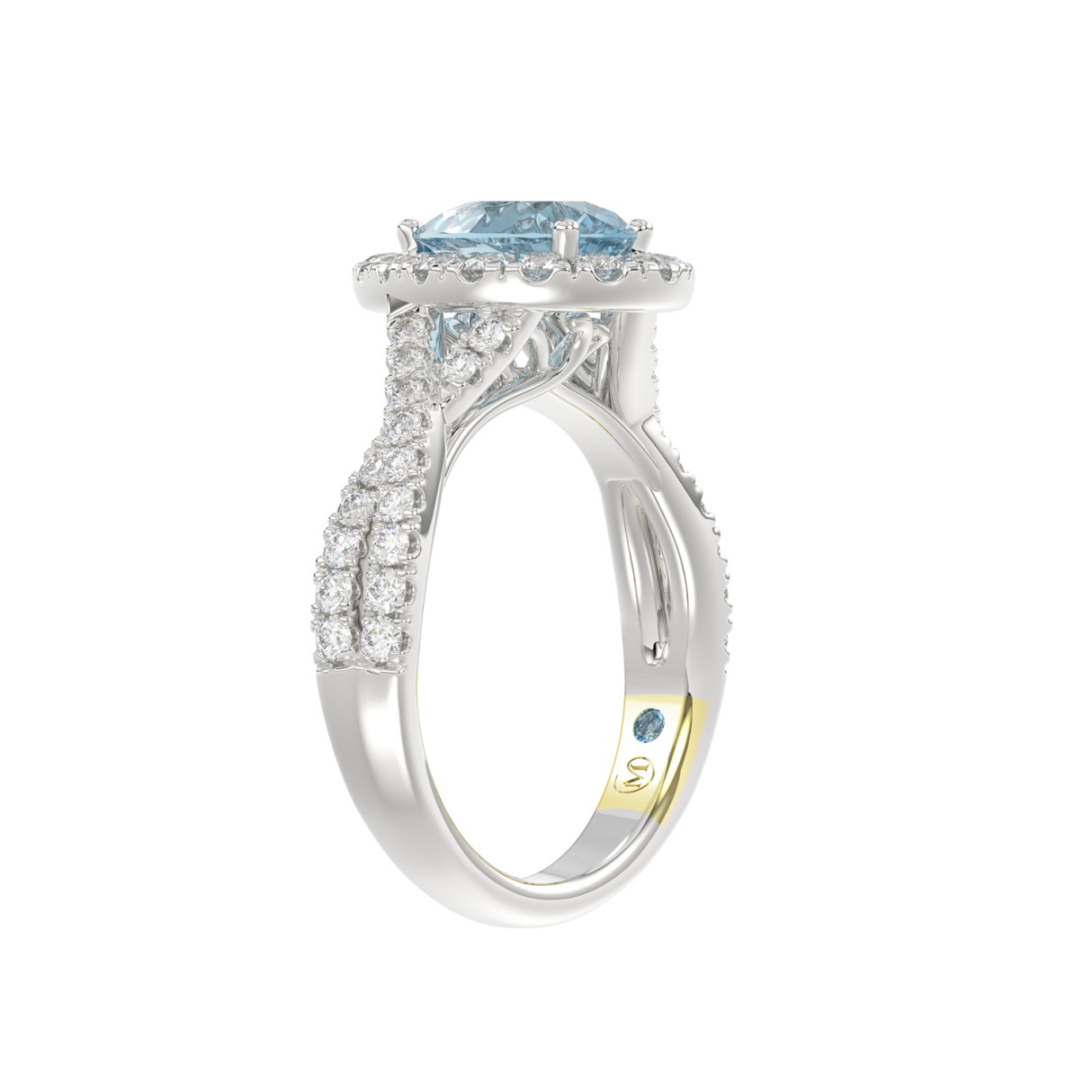 14K WHITE GOLD CRAFTED WITH 18K YELLOW GOLD SHANK 1 3/4CT ROUND/PEAR DIAMOND LADIES RING (CENTER STONE BLUE PEAR DIAMOND 1.00CT)