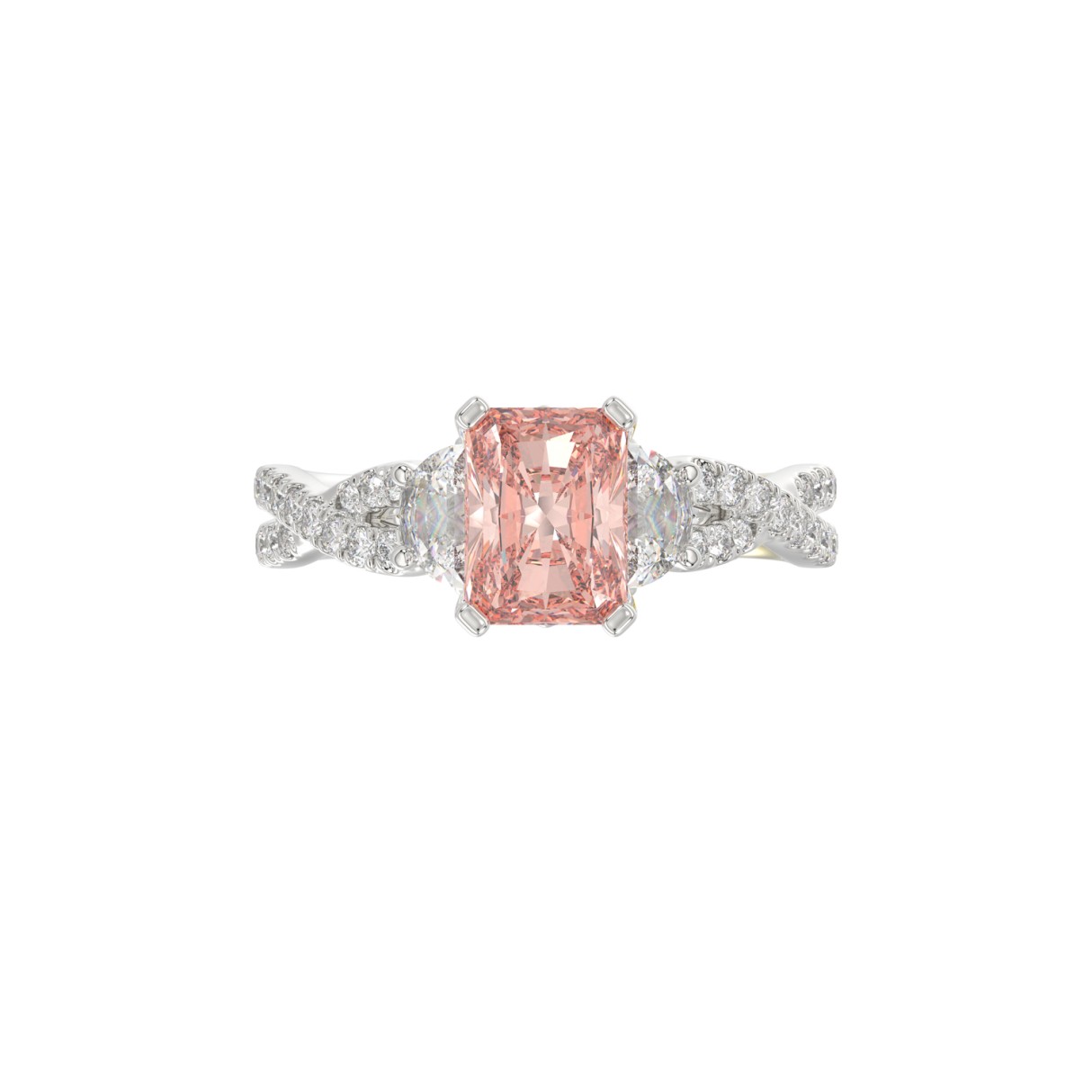 14K WHITE GOLD CRAFTED WITH 18K YELLOW GOLD SHANK 3.00CT ROUND/HALF MOON/EMERALD DIAMOND LADIES RING (CENTER STONE EMERALD PINK DIAMOND 2.00CT)