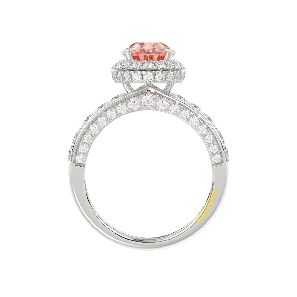 14K WHITE GOLD CRAFTED WITH 18K YELLOW GOLD SHANK 3 1/3CT ROUND/PEAR DIAMOND LADIES RING (CENTER STONE PINK PEAR DIAMOND 2.00CT)