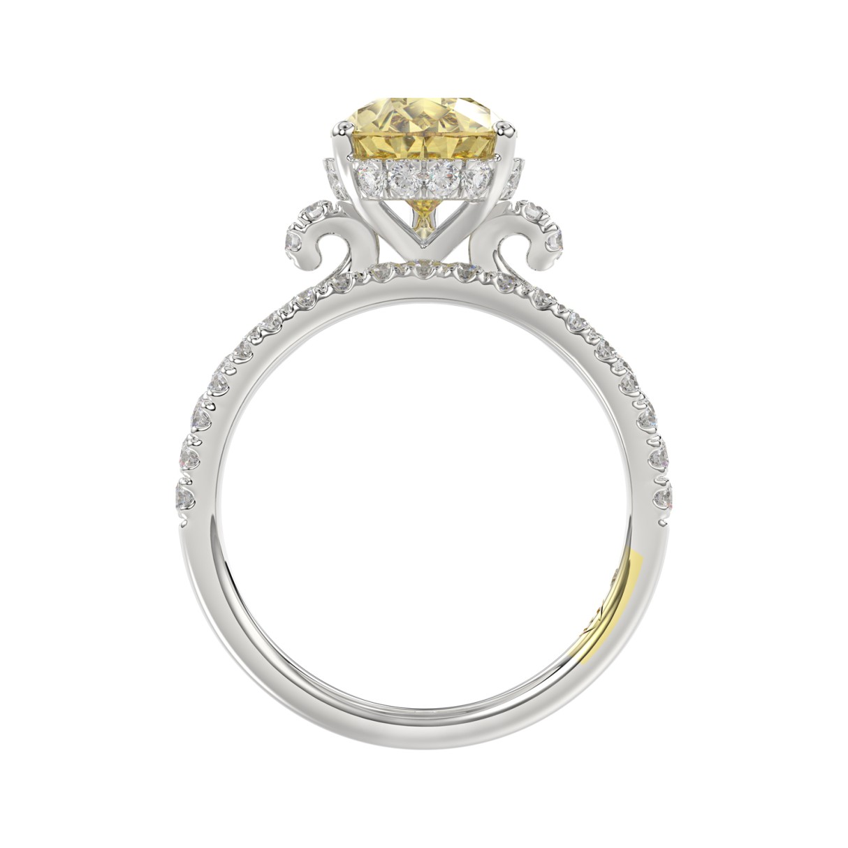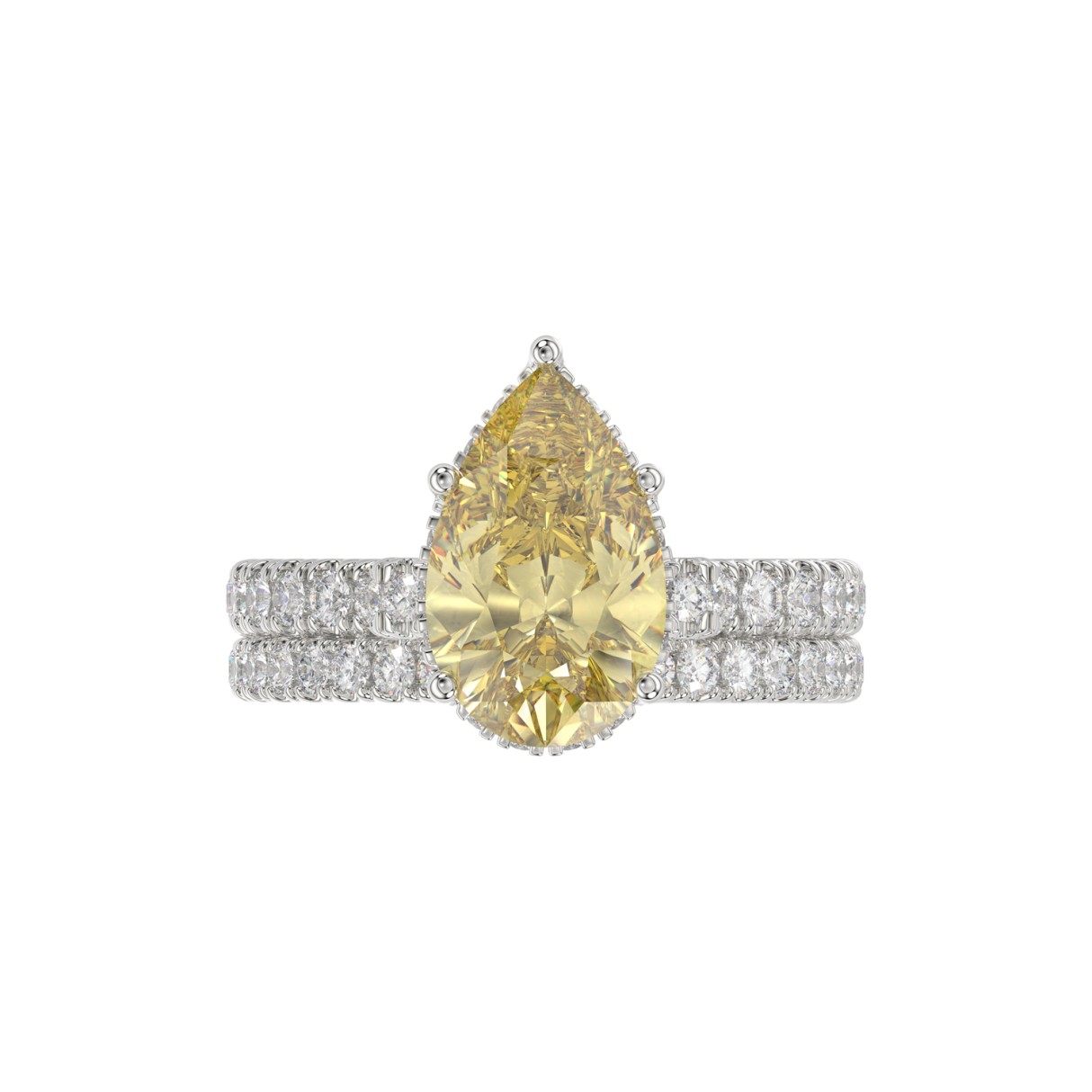 14K WHITE GOLD CRAFTED WITH 18K YELLOW GOLD SHANK 3 3/4CT ROUND/PEAR DIAMOND LADIES BRIDAL SET (CENTER STONE PEAR YELLOW DIAMOND 3.00CT)
