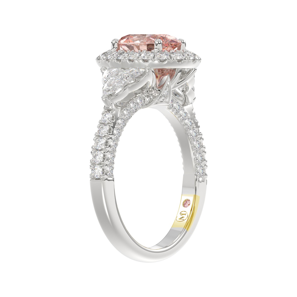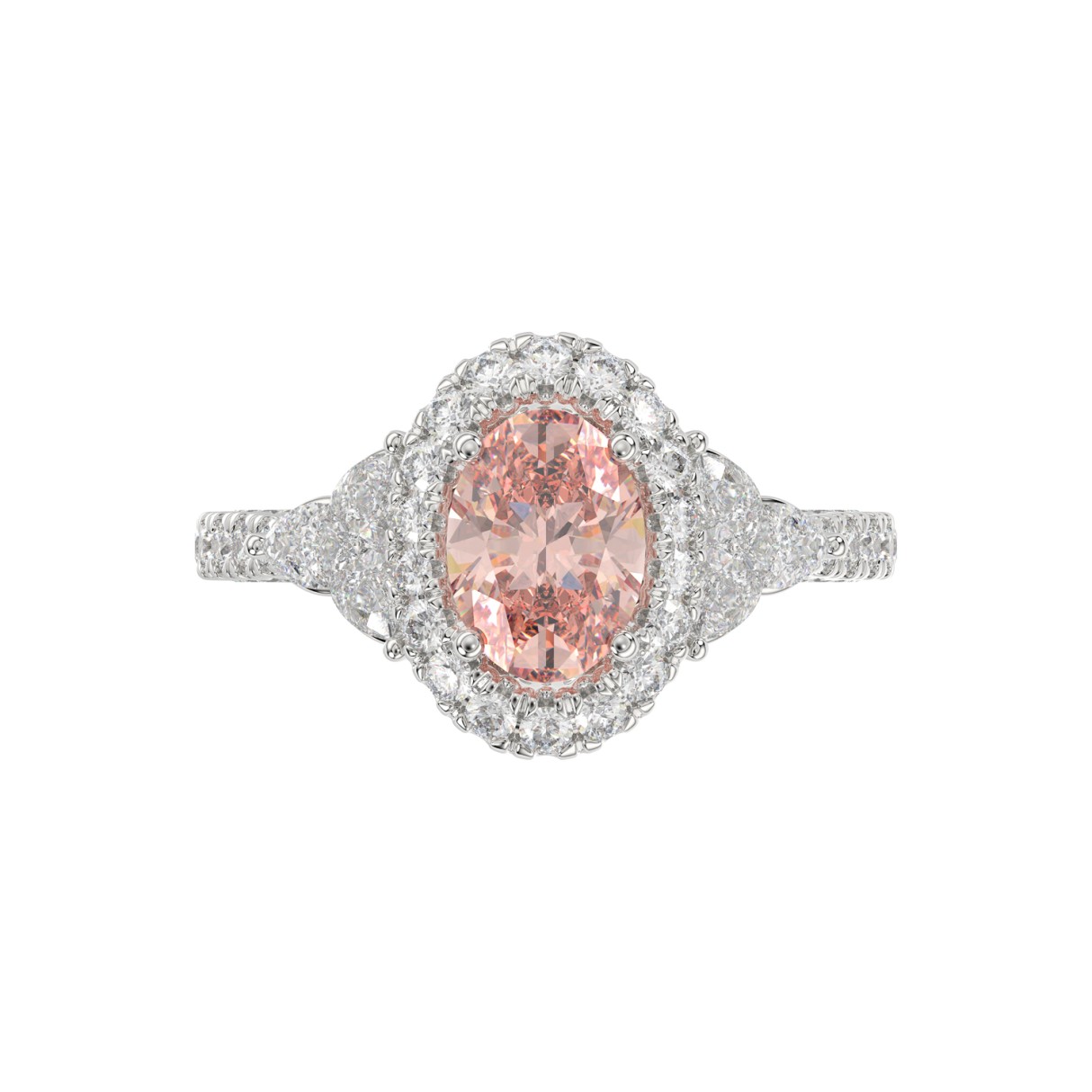 14K WHITE GOLD CRAFTED WITH 18K YELLOW GOLD SHANK 4.00CT ROUND/OVAL/TRIDENT DIAMOND LADIES BRIDAL RING (CENTER STONE OVAL PINK DIAMOND 2.00CT)