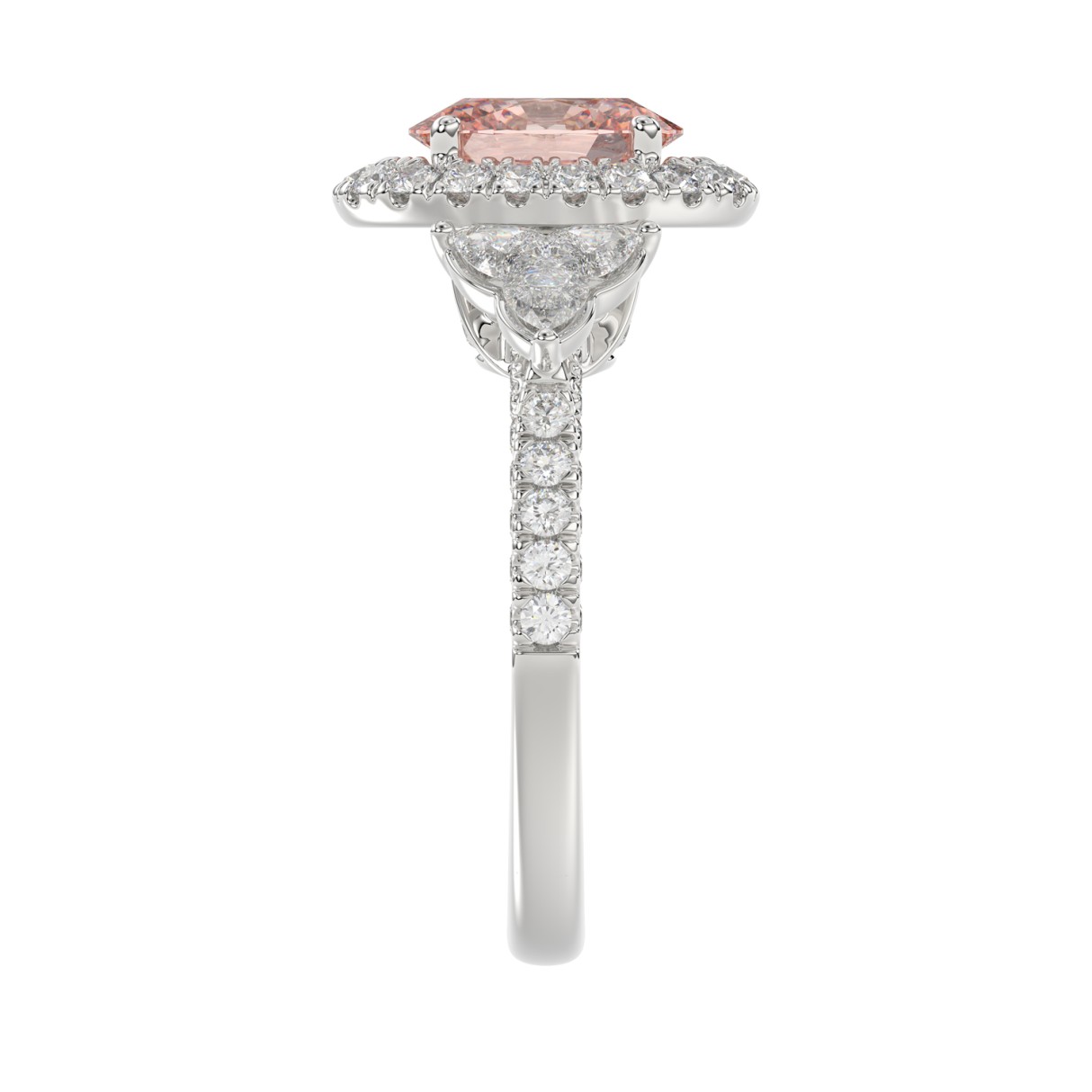 LADIES RING 3 3/4CT ROUND/PINK PEAR DIAMOND 14K WHITE GOLD (CENTER STONE PINK PEAR DIAMOND 2CT )