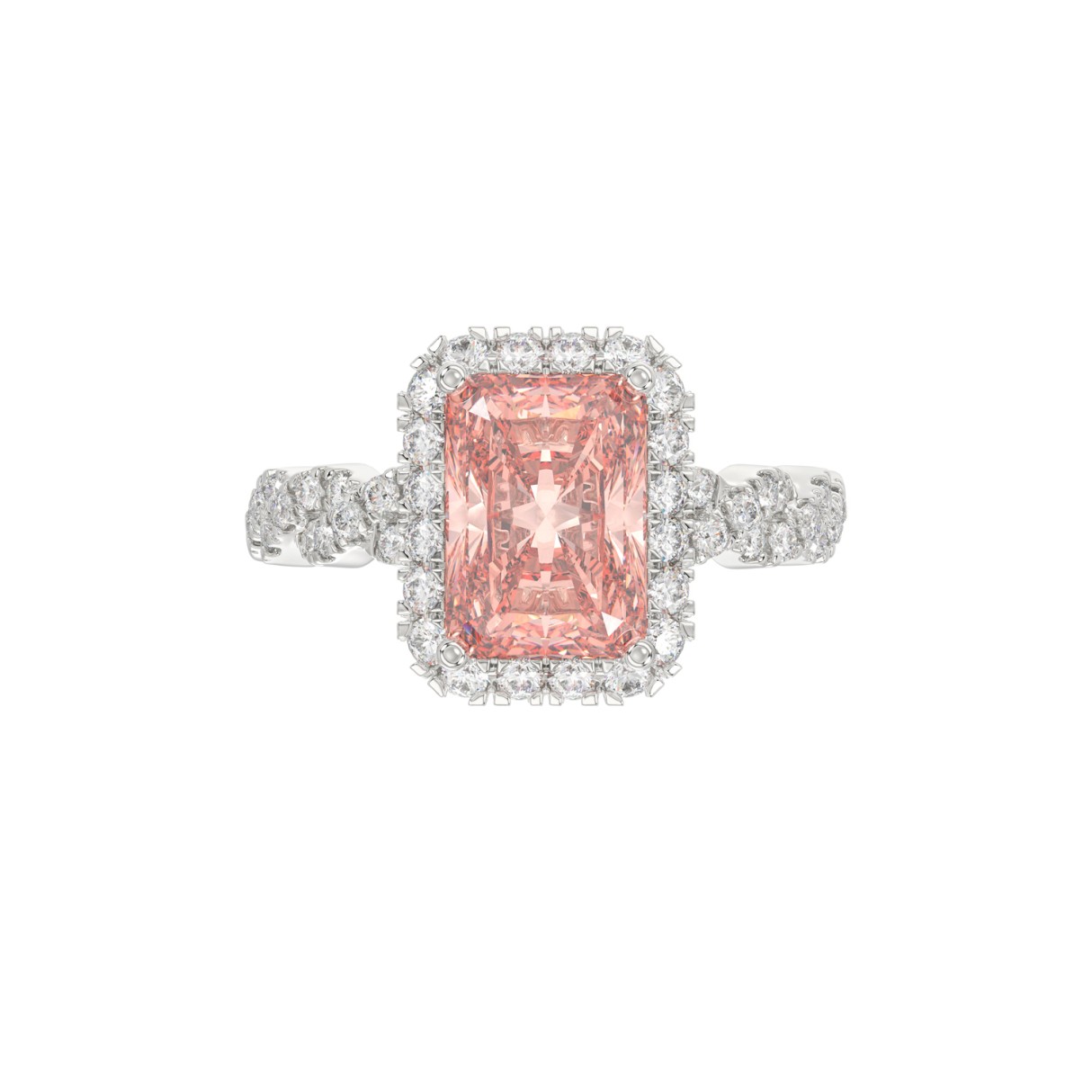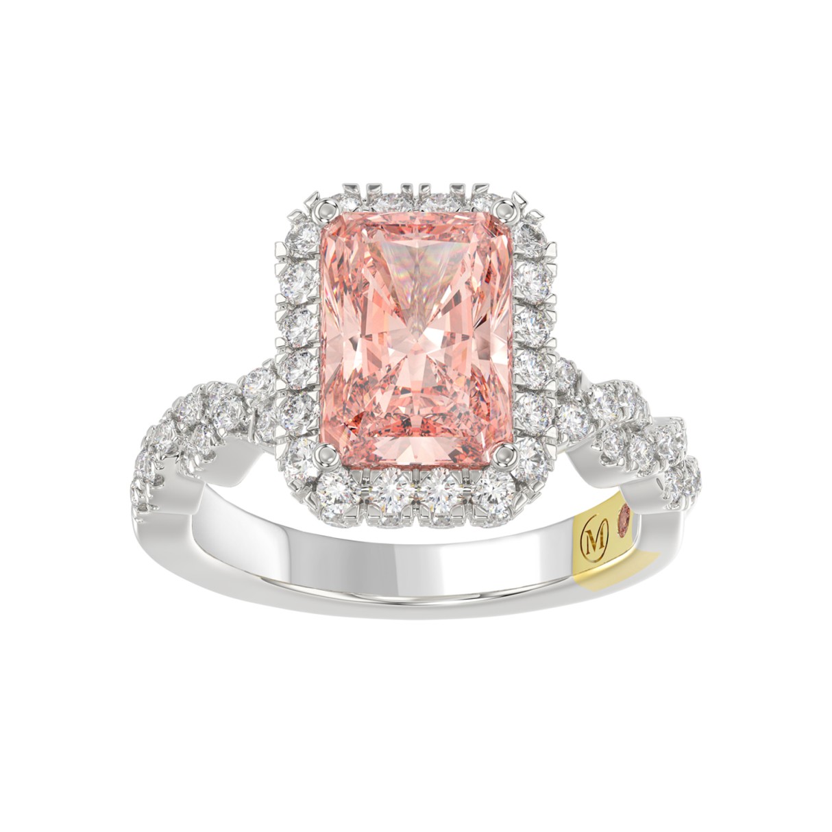 14K WHITE GOLD CRAFTED WITH 18K YELLOW GOLD SHANK 4.00CT ROUND/RADIANT DIAMOND LADIES BRIDAL RING (CENTER STONE RADIANT PINK DIAMOND 3.00CT)