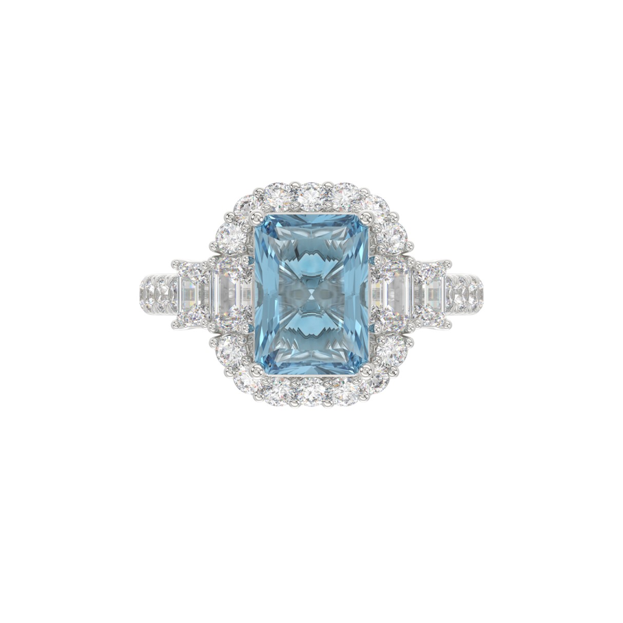 14K WHITE GOLD CRAFTED WITH 18K YELLOW GOLD SHANK 4 1/2CT ROUND/EMERALD DIAMOND LADIES RING (CENTER STONE EMERALD BLUE DIAMOND 3.00CT)