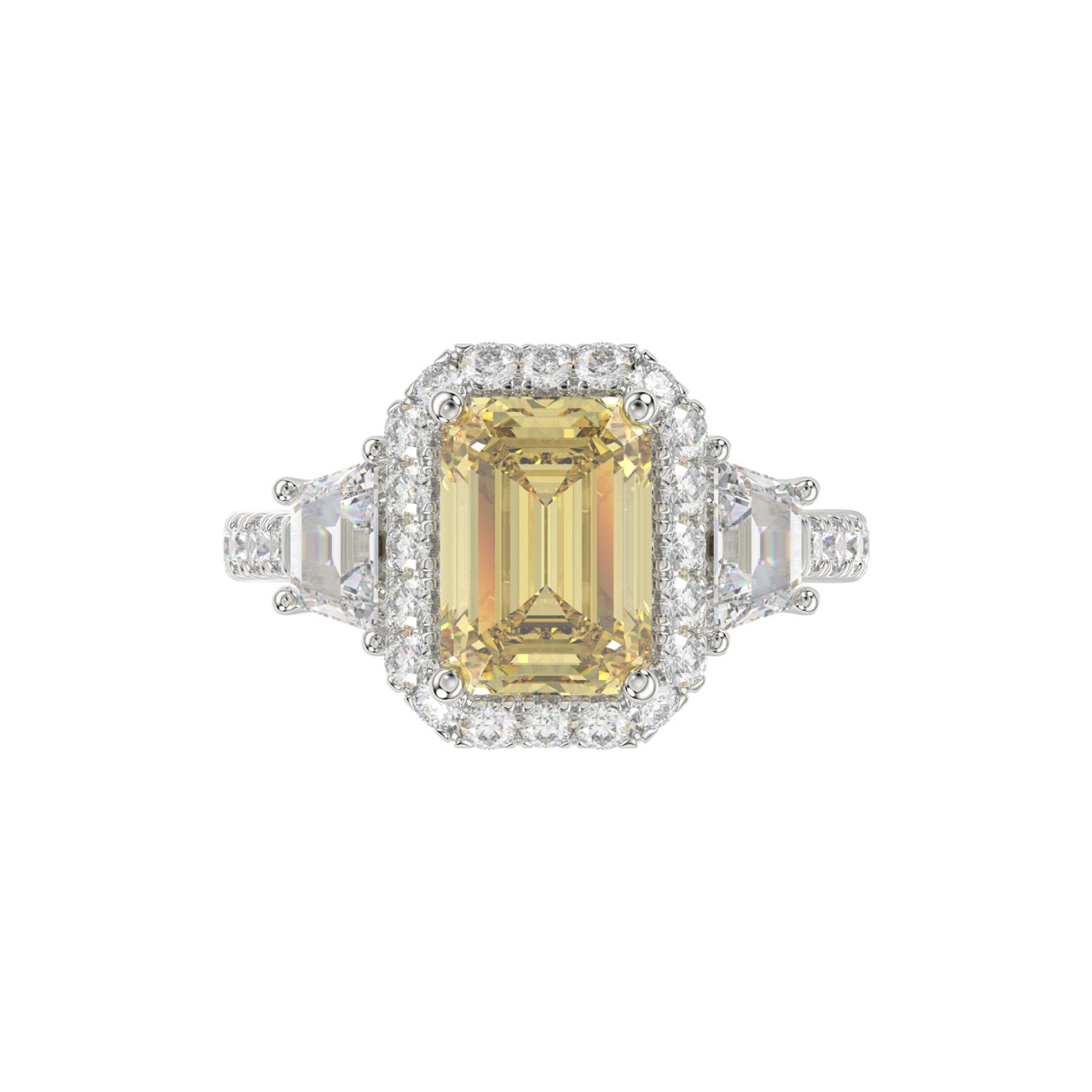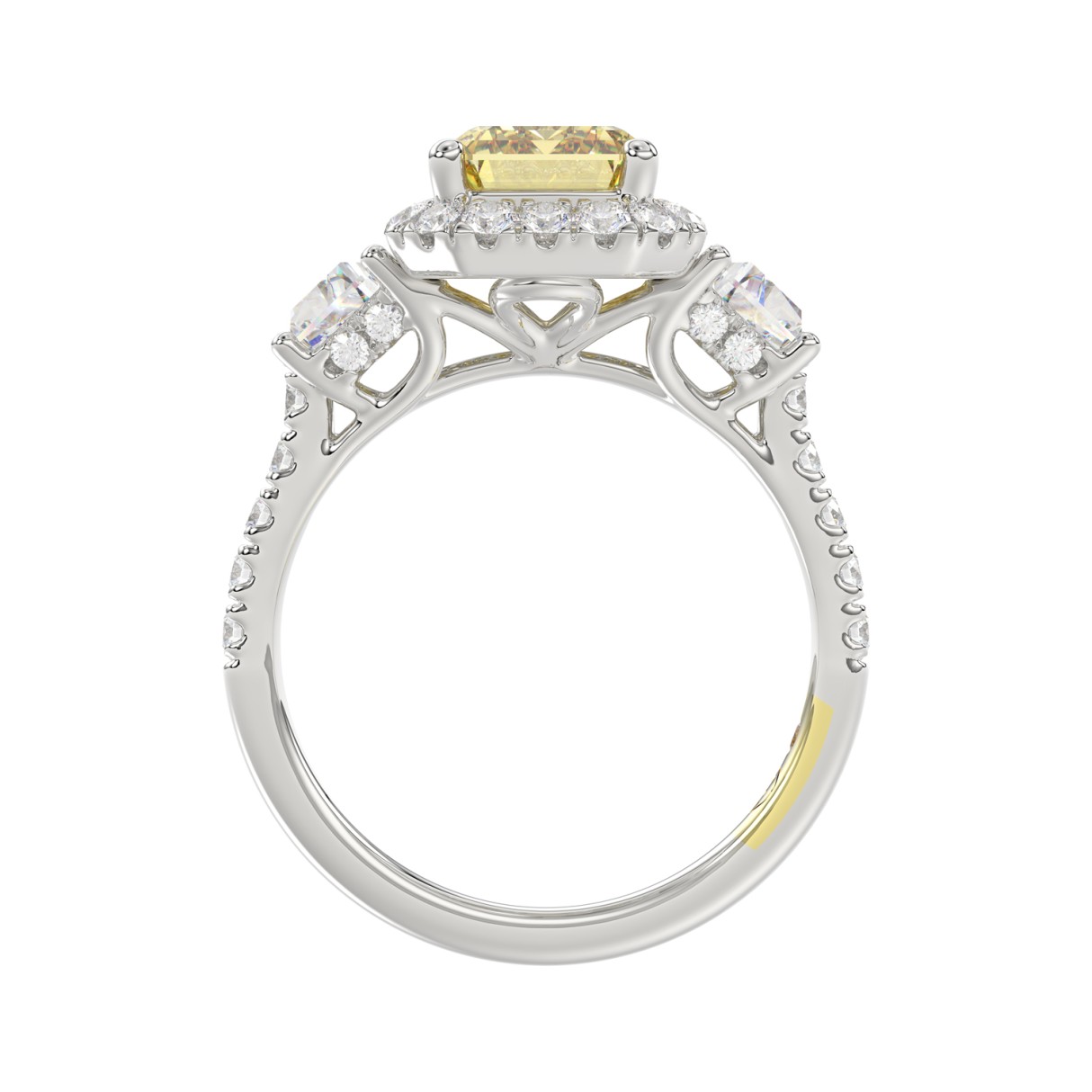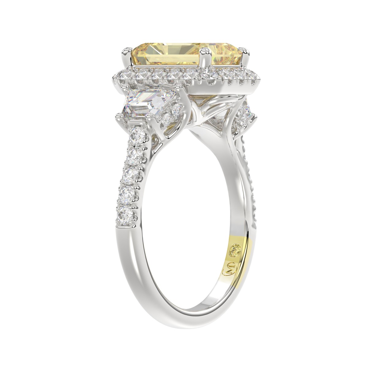 14K WHITE GOLD CRAFTED WITH 18K YELLOW GOLD SHANK 4 1/4CT ROUND/TRAPEZOID/RADIANT DIAMOND LADIES RING (CENTER STONE YELLOW RADIANT DIAMOND 3.00CT)