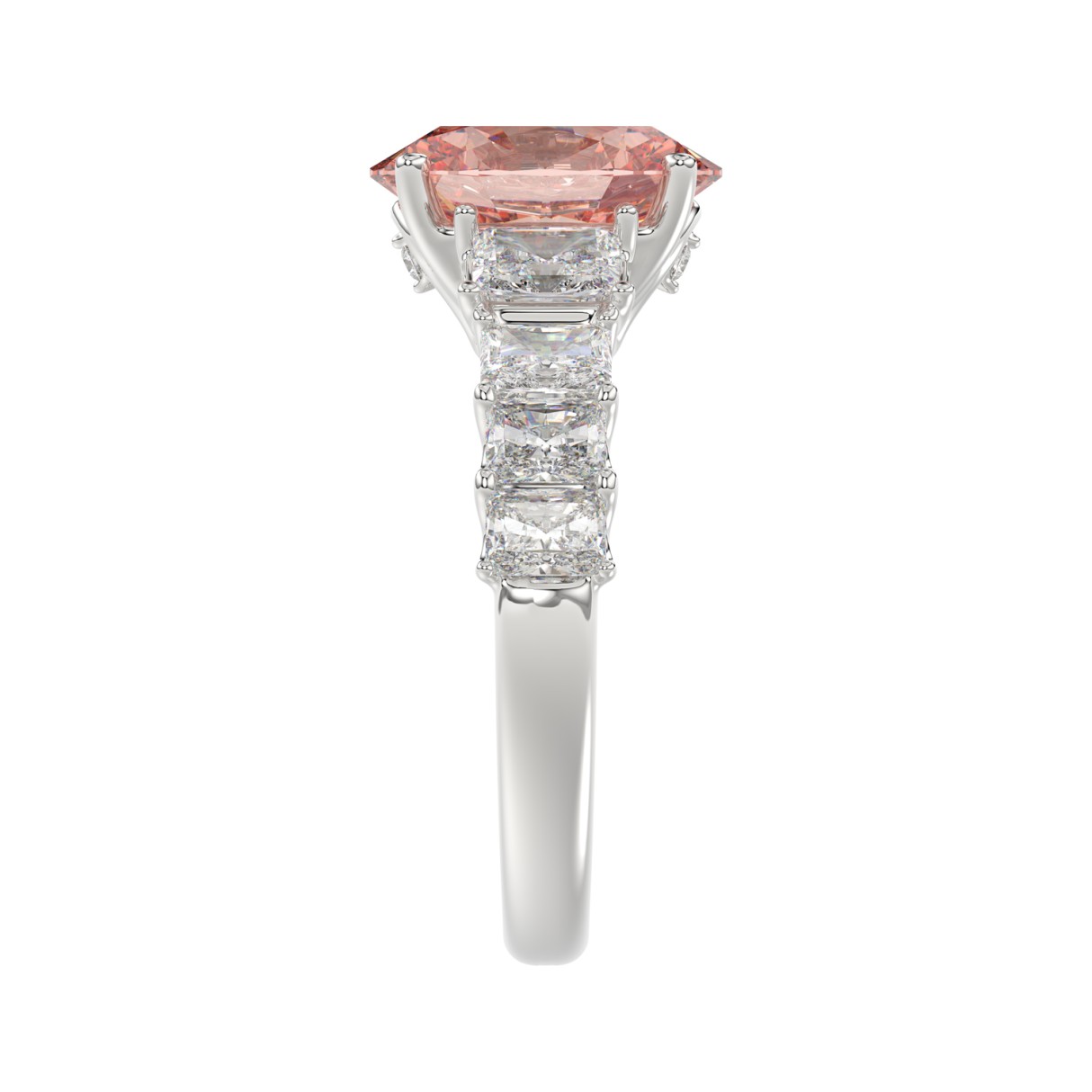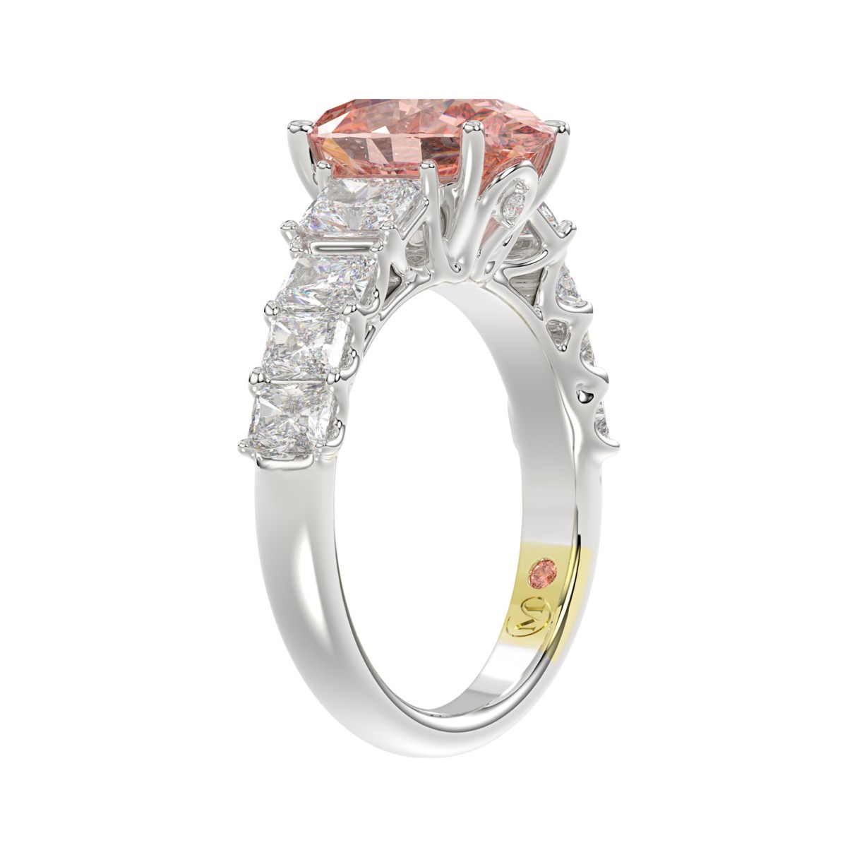 14K WHITE GOLD CRAFTED WITH 18K YELLOW GOLD SHANK 4 3/4CT ROUND/OVAL/RADIANT DIAMOND LADIES RING (CENTER STONE OVAL PINK DIAMOND 3.00CT)