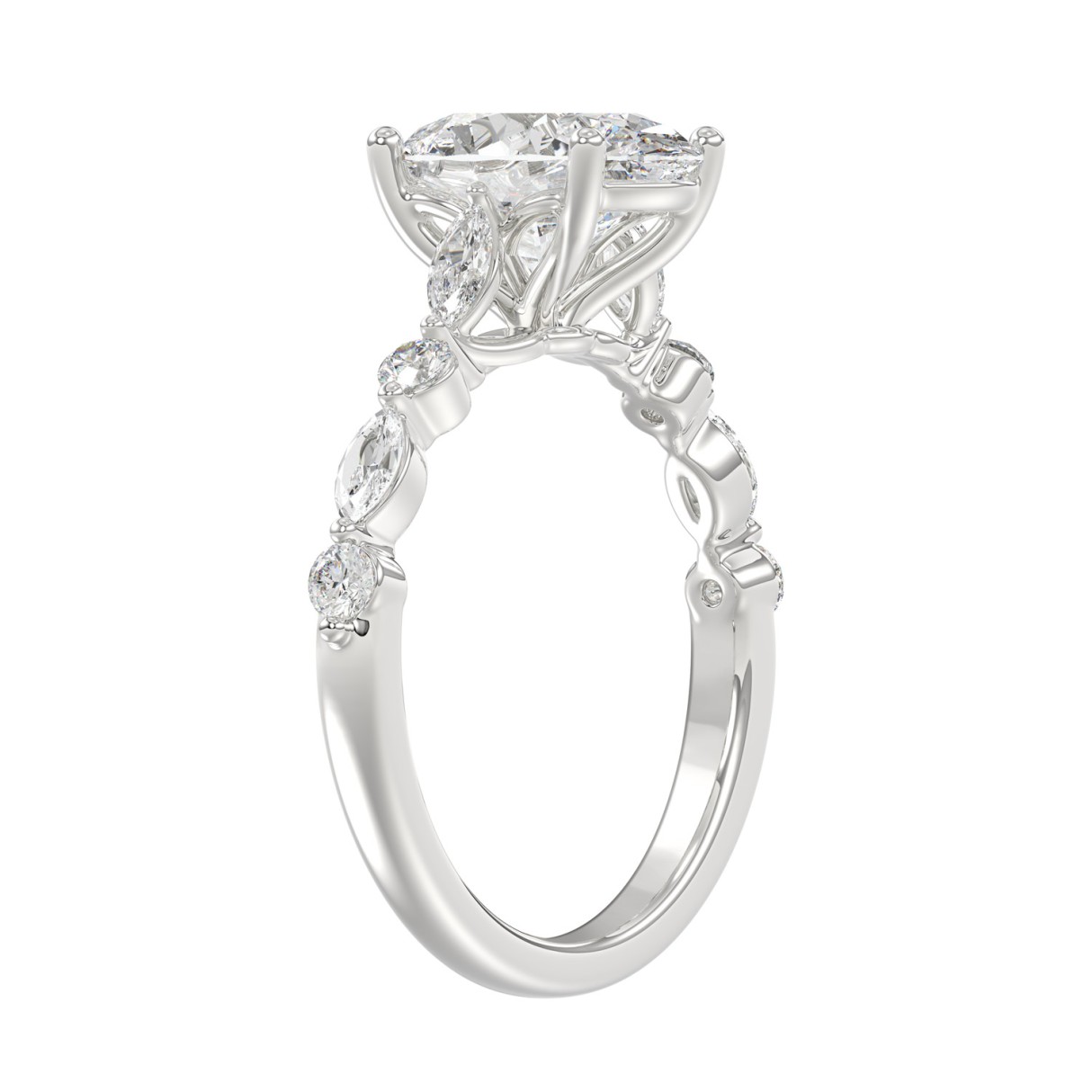 14K White Gold Oval Diamond Fancy Engagement Ring for Ladies 2 1/2CT with Marquise & Round Diamond 2.00CT Oval Center stone (Color F-G -Clarity VS